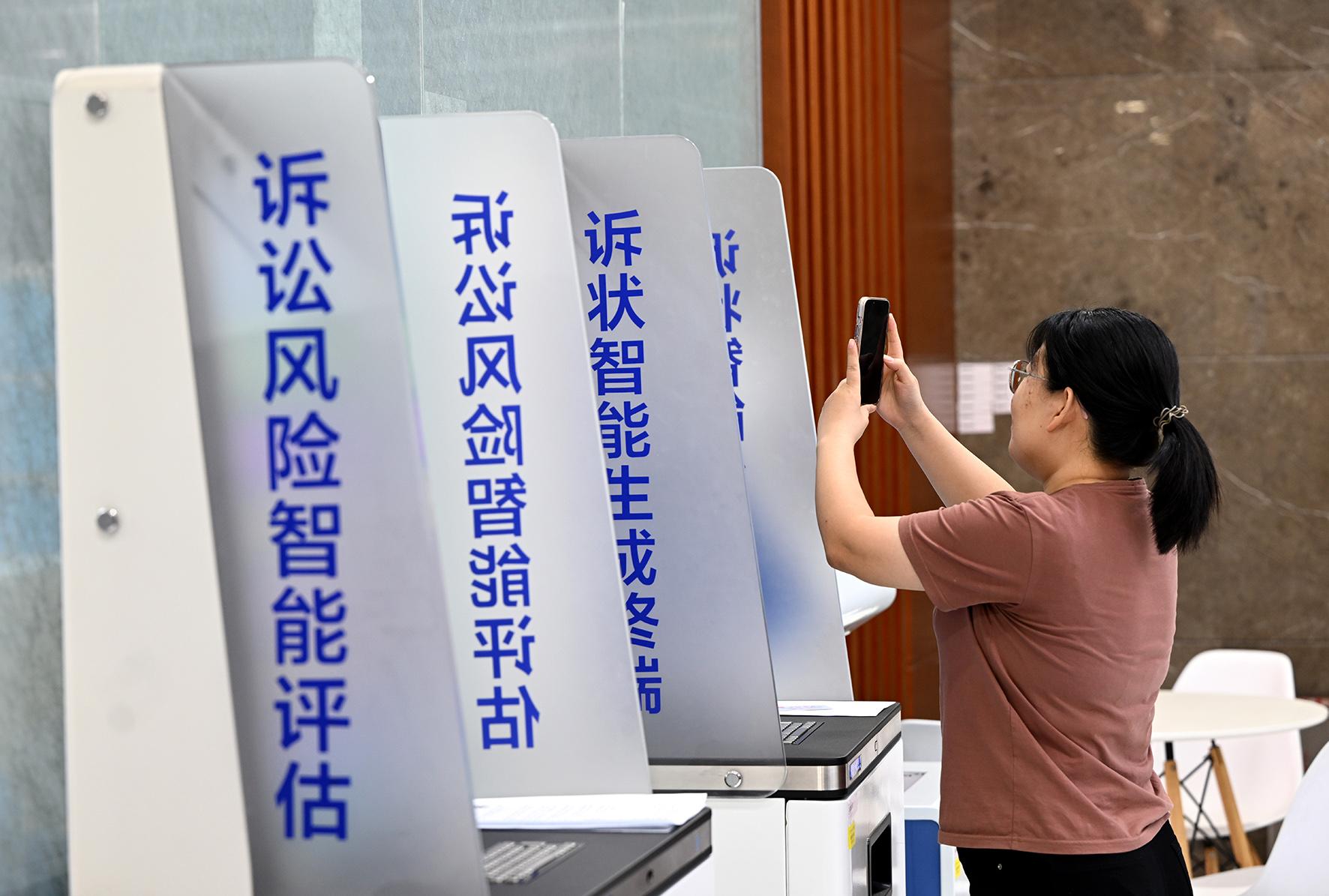當(dāng)事人使用法院接待大廳的訴狀智能生成終端機(jī)器上制作起訴書。