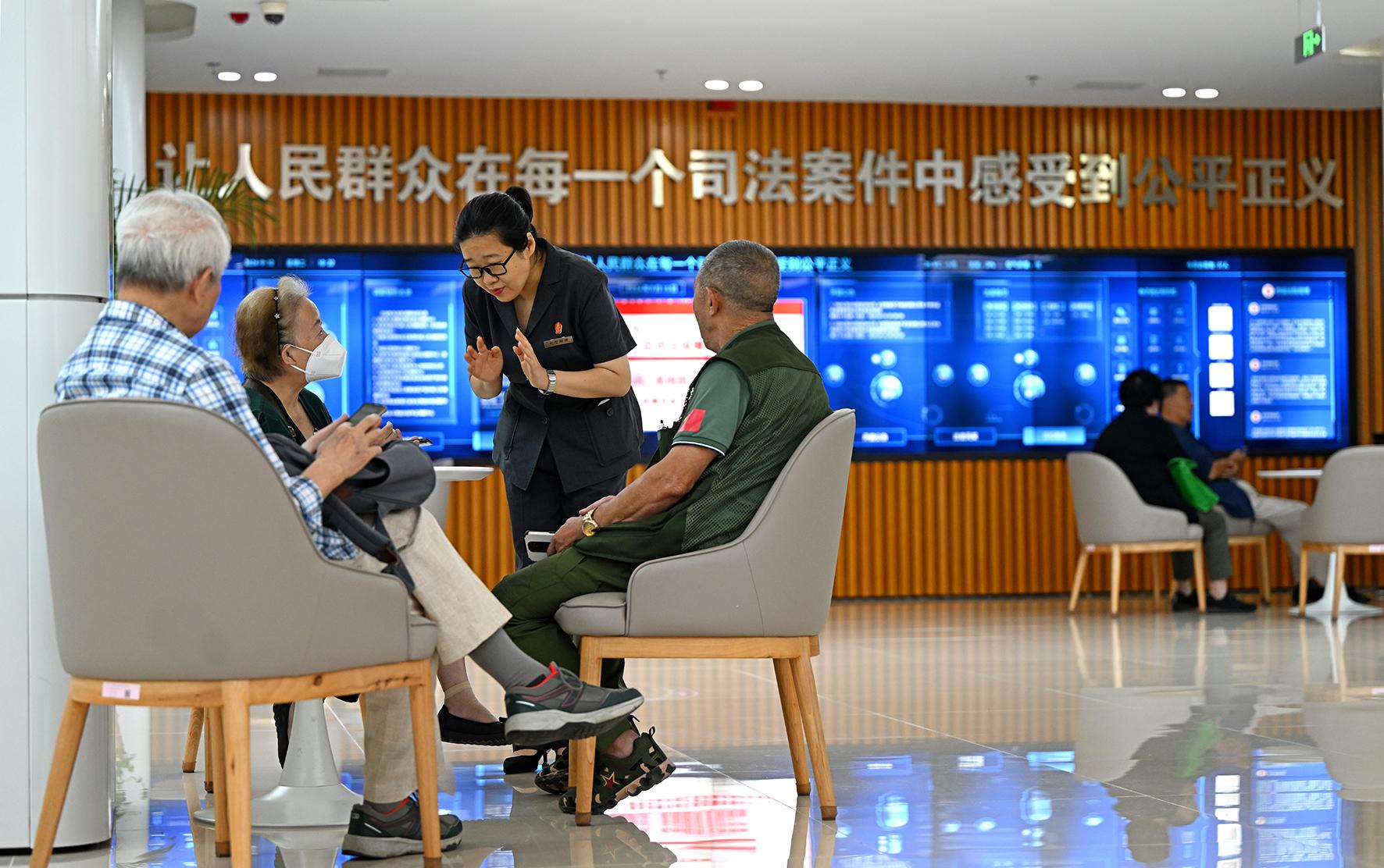 “群眾遇到各種問題和困難,都可以找‘大廳經(jīng)理’來咨詢?!倍糯焊嬖V記者,大廳里有老弱病殘孕等特殊人群時,她會主動上前提供幫助。作為“大廳經(jīng)理”,她每天會帶領(lǐng)訴服團(tuán)隊成員共同復(fù)盤訴訟群眾最“急難愁盼”的各類需求,梳理和解決各類共性問題。為了更好地服務(wù)特殊困難群體,西城區(qū)人民法院開通了“綠色通道”,前端訴訟接待人員專門學(xué)習(xí)了手語,如果遇到了行動不便的當(dāng)事人,將提供“一對一”陪同式訴訟服務(wù)。