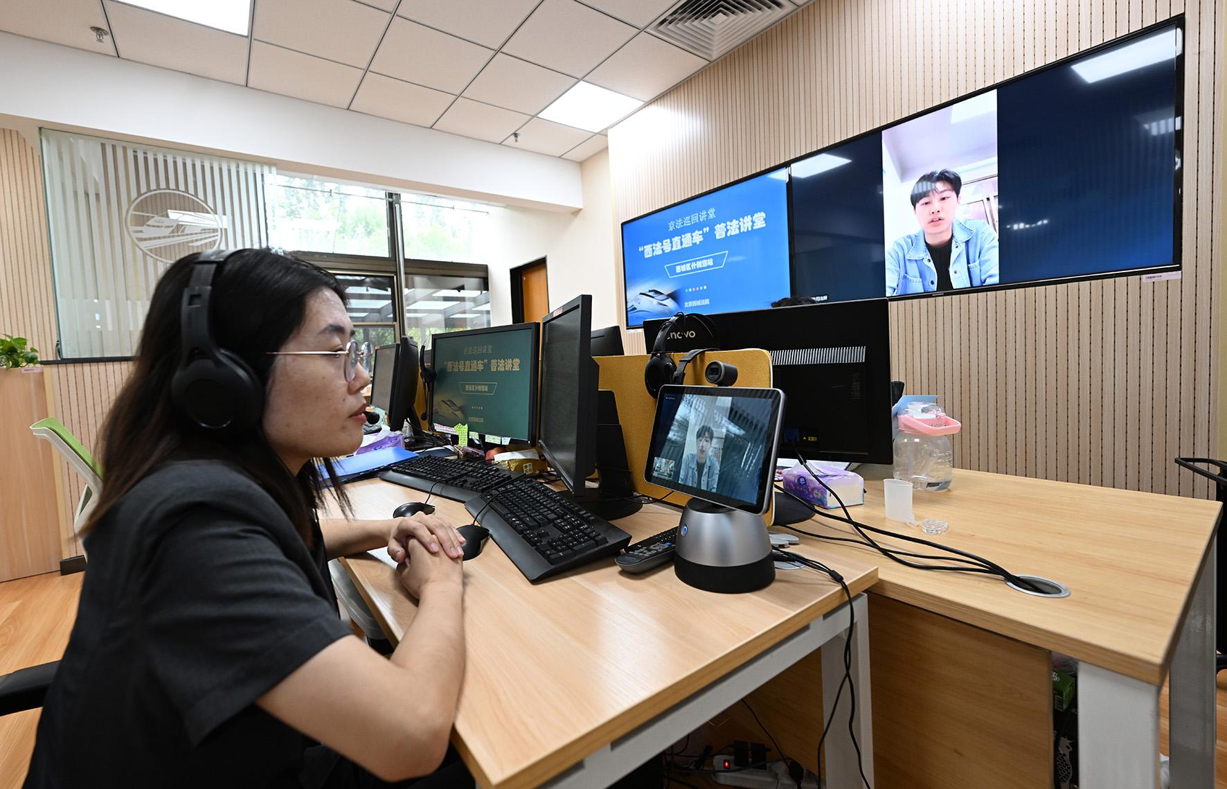 多元解紛訴調(diào)對接中心法官王運(yùn)佳正在網(wǎng)上審理一起涉北京某知識產(chǎn)權(quán)代理公司的商標(biāo)代理糾紛案件。