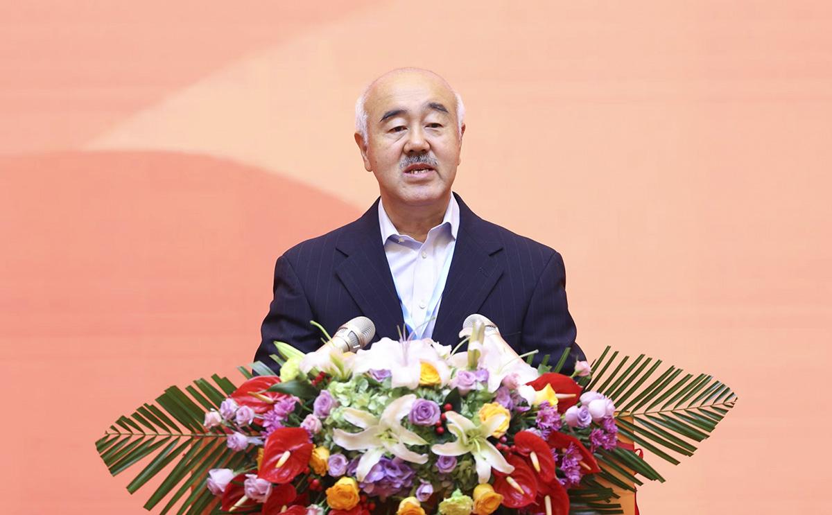 圖為中國新聞攝影學(xué)會會長蘭紅光在啟動儀式上講話。