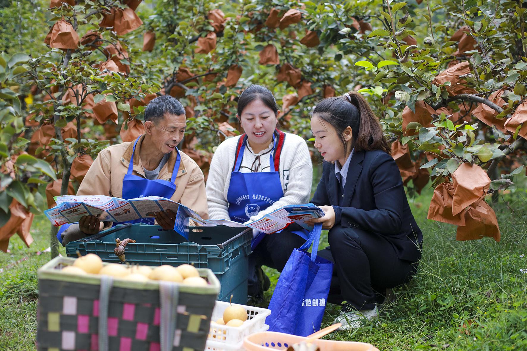 10月9日,貴州省黔西市司法局組織法治工作者走進(jìn)轄區(qū)內(nèi)的鐵石苗族彝族鄉(xiāng)六棱山村金果梨果園,向果農(nóng)宣傳反詐、禁毒、民法典等法律知識。
