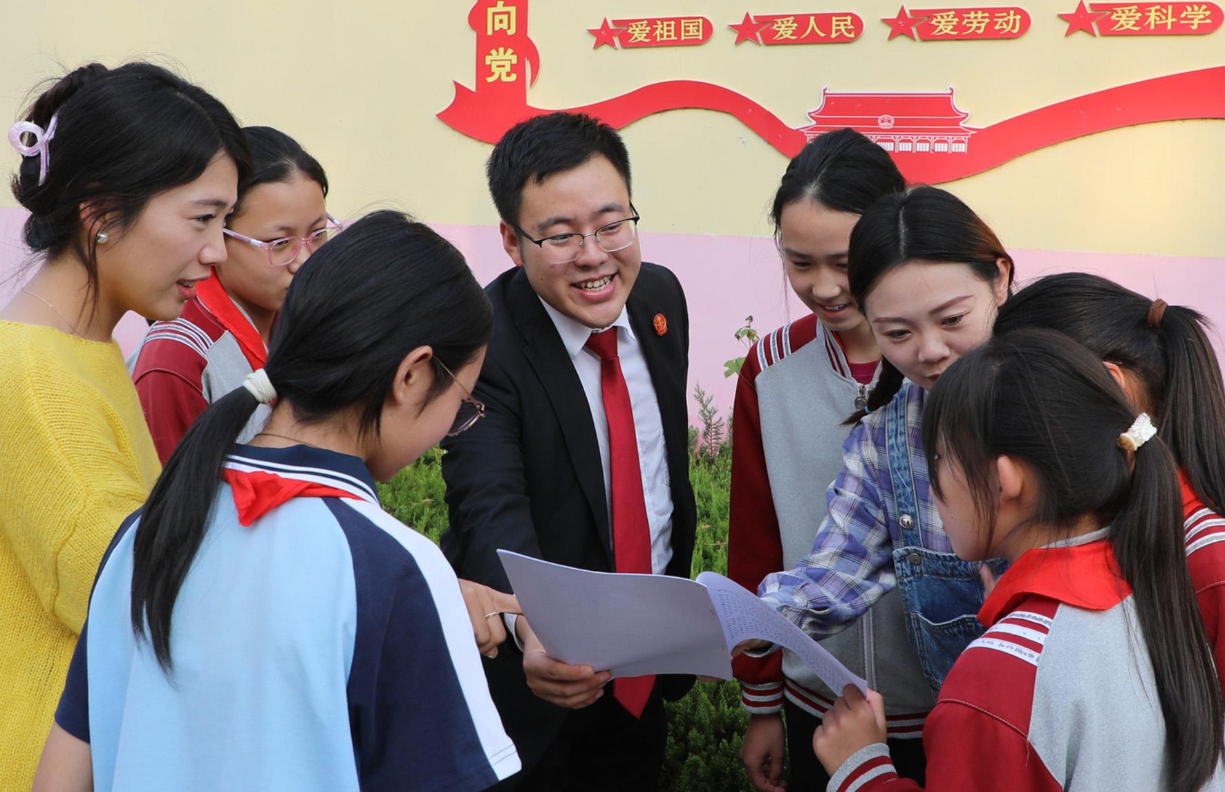 圖為10月9日,道口人民法庭干警給同學(xué)們答疑解惑。