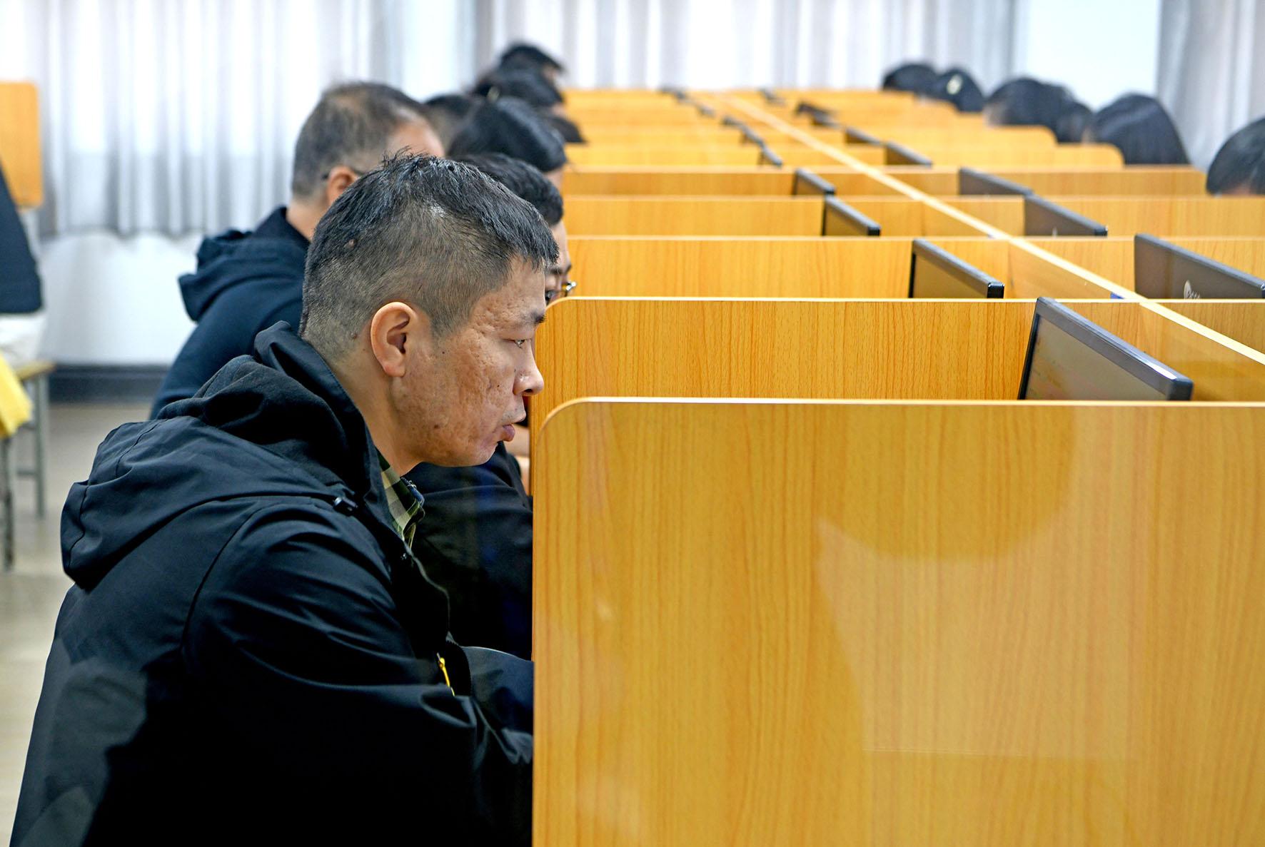 圖為安徽省淮南市考生在安徽工貿(mào)職業(yè)技術(shù)學(xué)院考點(diǎn)參加考試。