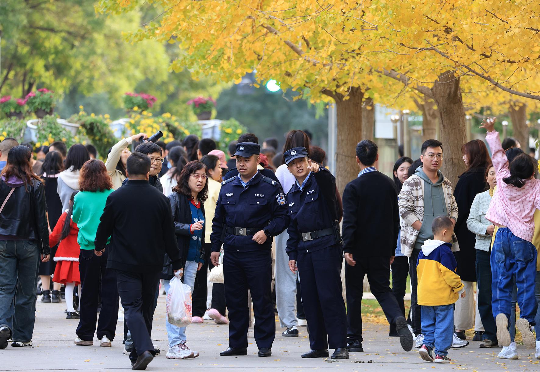 深秋時節(jié),位于甘肅省蘭州市安寧區(qū)的蘭州植物園內秋景如畫,游人如織。蘭州市公安局安寧分局劉家堡派出所民警在景區(qū)內開展巡邏防護、反詐宣傳及群眾服務游客等工作,確保游客出行安全,助力鄉(xiāng)村旅游。