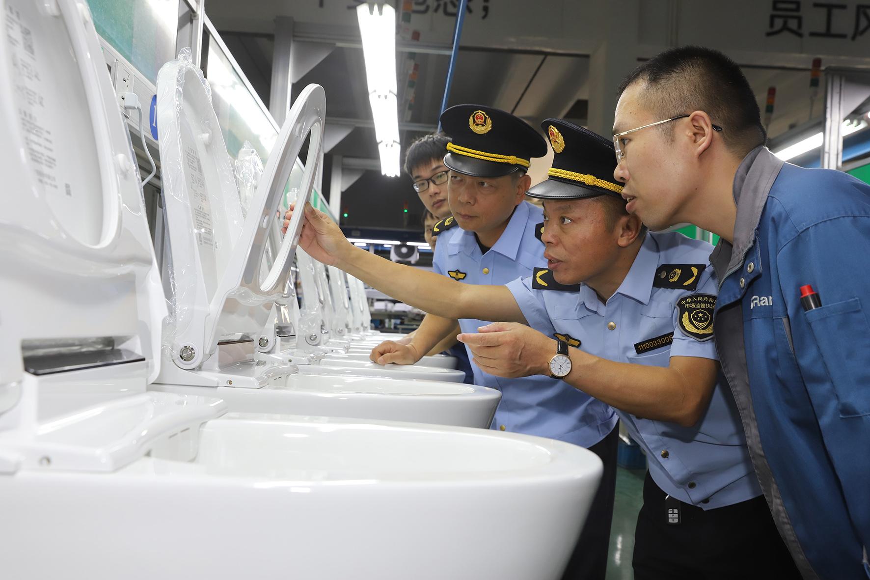 10月23日,浙江省臺州市路橋區(qū)橫街鎮(zhèn)市場監(jiān)督管理所執(zhí)法人員在轄區(qū)一家衛(wèi)浴企業(yè)走訪,并監(jiān)督企業(yè)嚴把產(chǎn)品質量關。