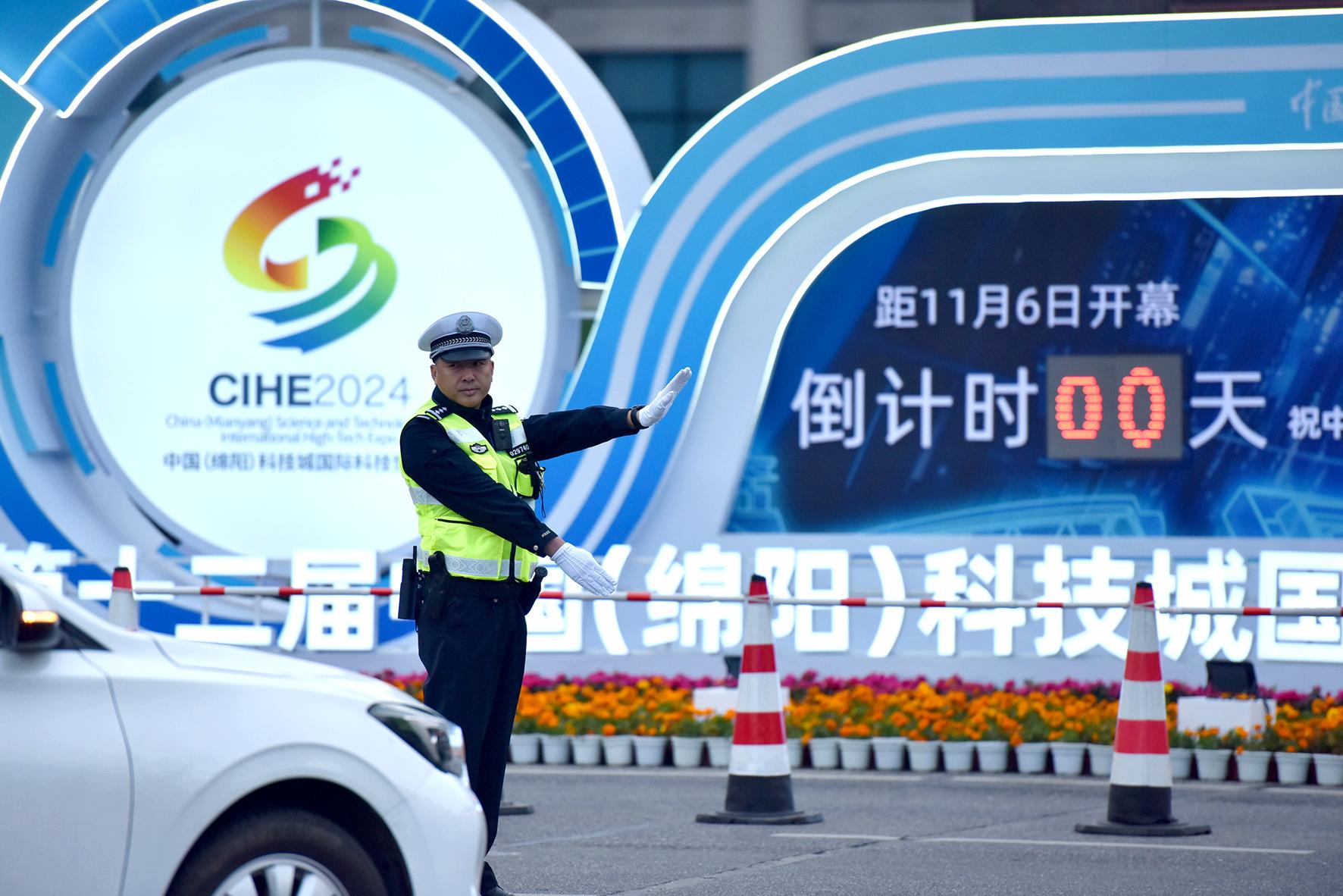 11月6日,第十二屆中國(guó)(綿陽)科技城國(guó)際科技博覽會(huì)開幕。四川省綿陽市公安局交警支隊(duì)直屬一大隊(duì)科學(xué)制定交通組織措施,全員上路指揮疏導(dǎo),確保道路交通安全暢通。