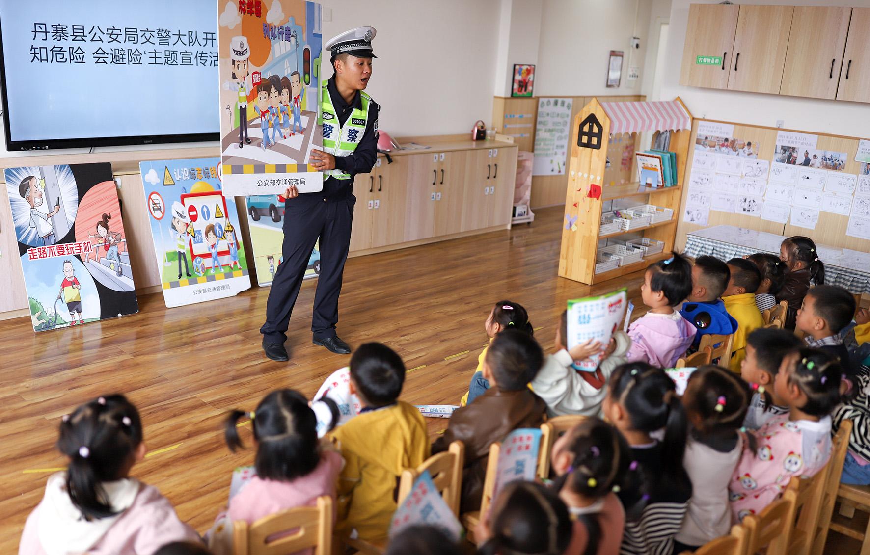 11月12日,貴州省丹寨縣公安局交警大隊民警走進第四幼兒園開展交通安全宣傳活動。
