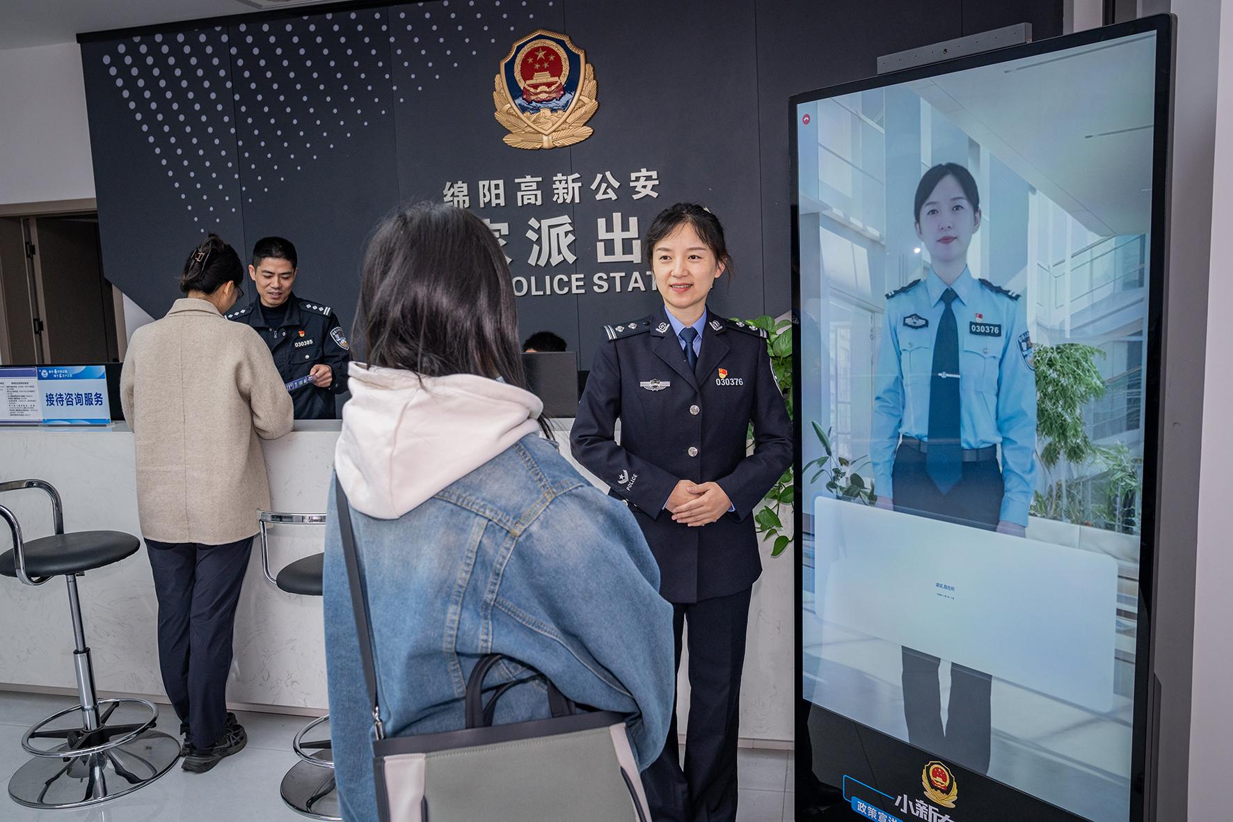 “AI小新警官”以四川省綿陽市公安局高新區(qū)分局磨家派出所民警鄒潔為原型設(shè)計生成,基于大語言模型調(diào)優(yōu),搭載豐富的知識庫,具有更先進(jìn)的語義理解、自主學(xué)習(xí)和數(shù)據(jù)分析能力,可以提供更自然的交互體驗,使得辦事人員能得到及時、高效的互動反饋與辦事引導(dǎo),提高便民服務(wù)的效率。