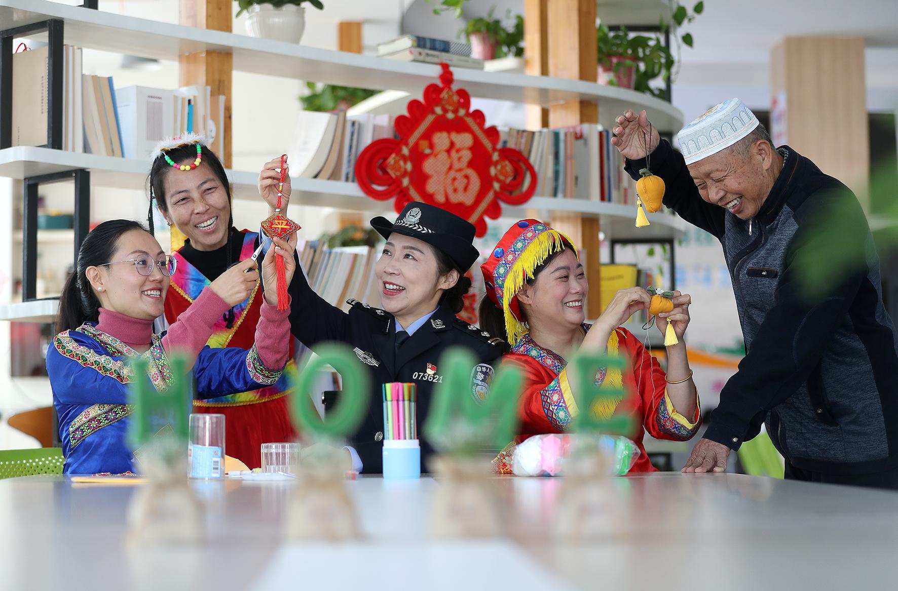 11月20日,湖北省荊門市公安局高新區(qū)·掇刀區(qū)分局掇刀石派出所民警在白石坡社區(qū),與轄區(qū)少數(shù)民族居民開展反詐禁毒“平安香囊”手工DIY活動。