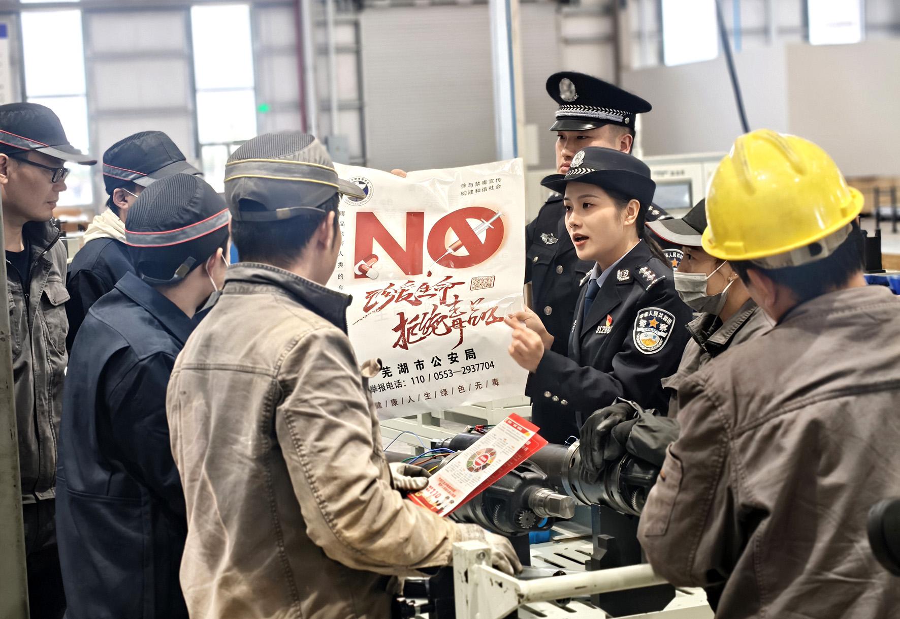 11月19日,安徽省蕪湖市南陵縣公安局經(jīng)濟(jì)開發(fā)區(qū)派出所針對轄區(qū)工業(yè)園外來務(wù)工人員多、流動性大的特點(diǎn),組織民警走進(jìn)企業(yè)車間宣傳禁毒知識。