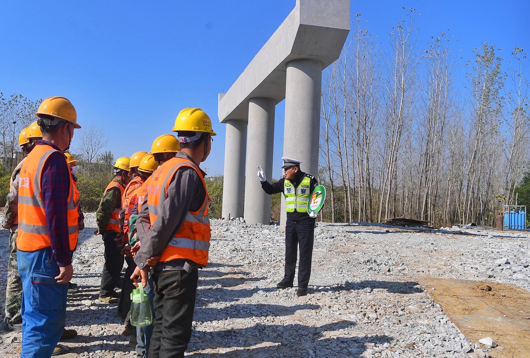 11月30日,安徽省巢湖市公安局交警大隊民警在合蕪高速公路肥東段路基項目部施工現(xiàn)場開展交通安全教育活動。