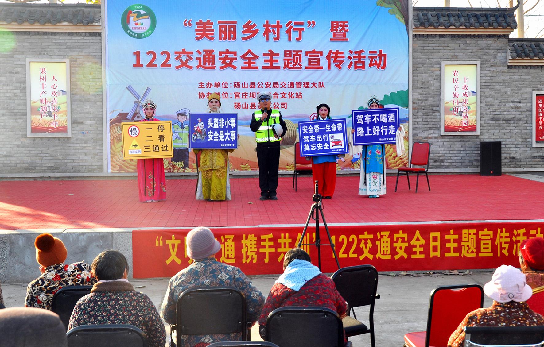 11月29日,安徽省碭山縣公安局交警大隊民警來到官莊鎮(zhèn)開展以“文明交通 攜手共創(chuàng)”為主題的“全國交通安全日”暨“美麗鄉(xiāng)村行”巡回宣傳活動。