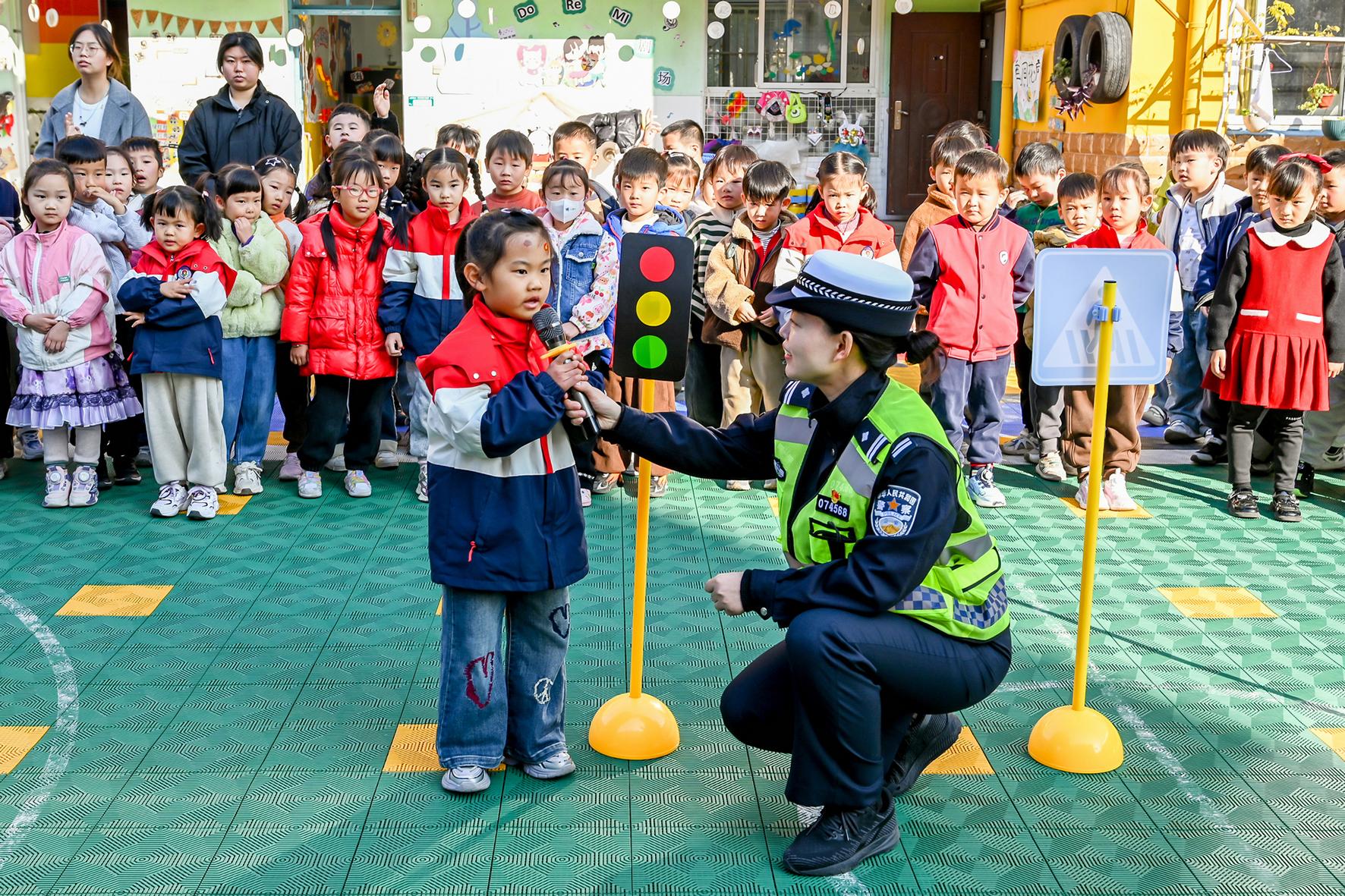 12月2日,安徽省馬鞍山市和縣公安局民警在歷陽鎮(zhèn)培賢幼兒園開展交通安全知識宣傳。
