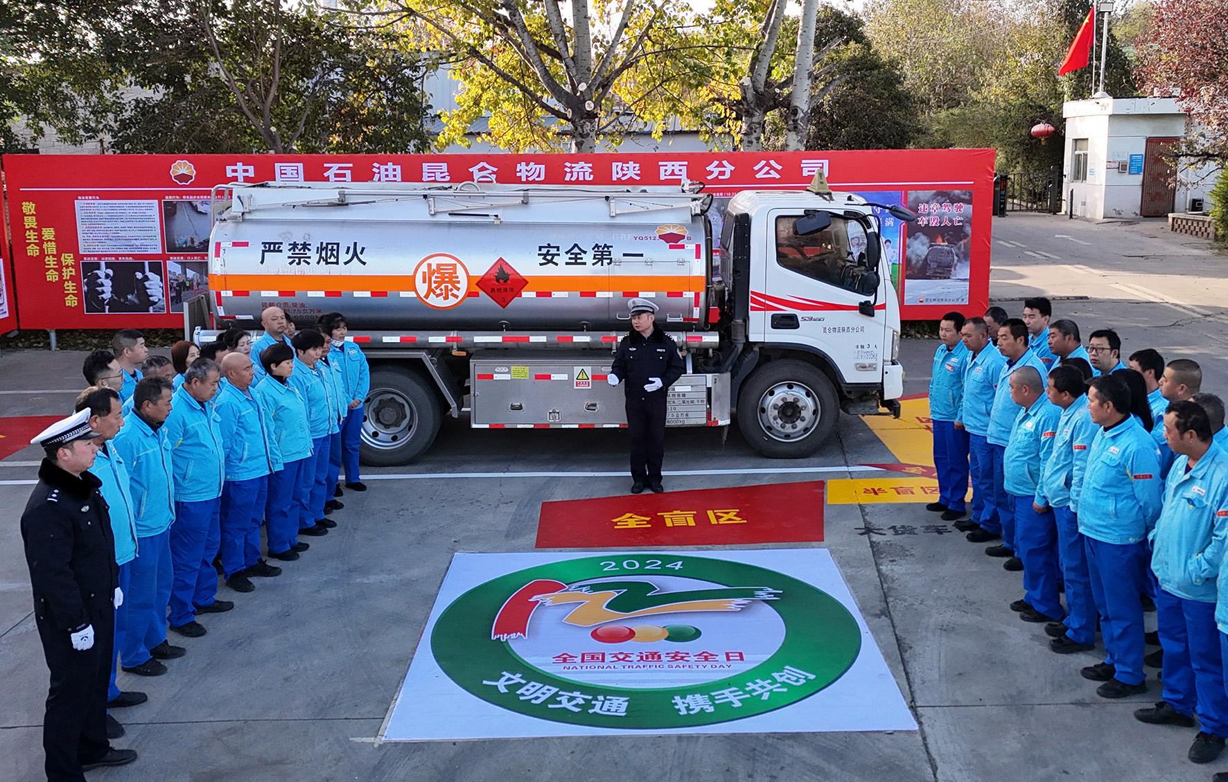 11月28日,陜西省渭南市公安局交警支隊臨渭大隊民警走進企業(yè),向危化品運輸駕駛人員宣講交通安全知識。