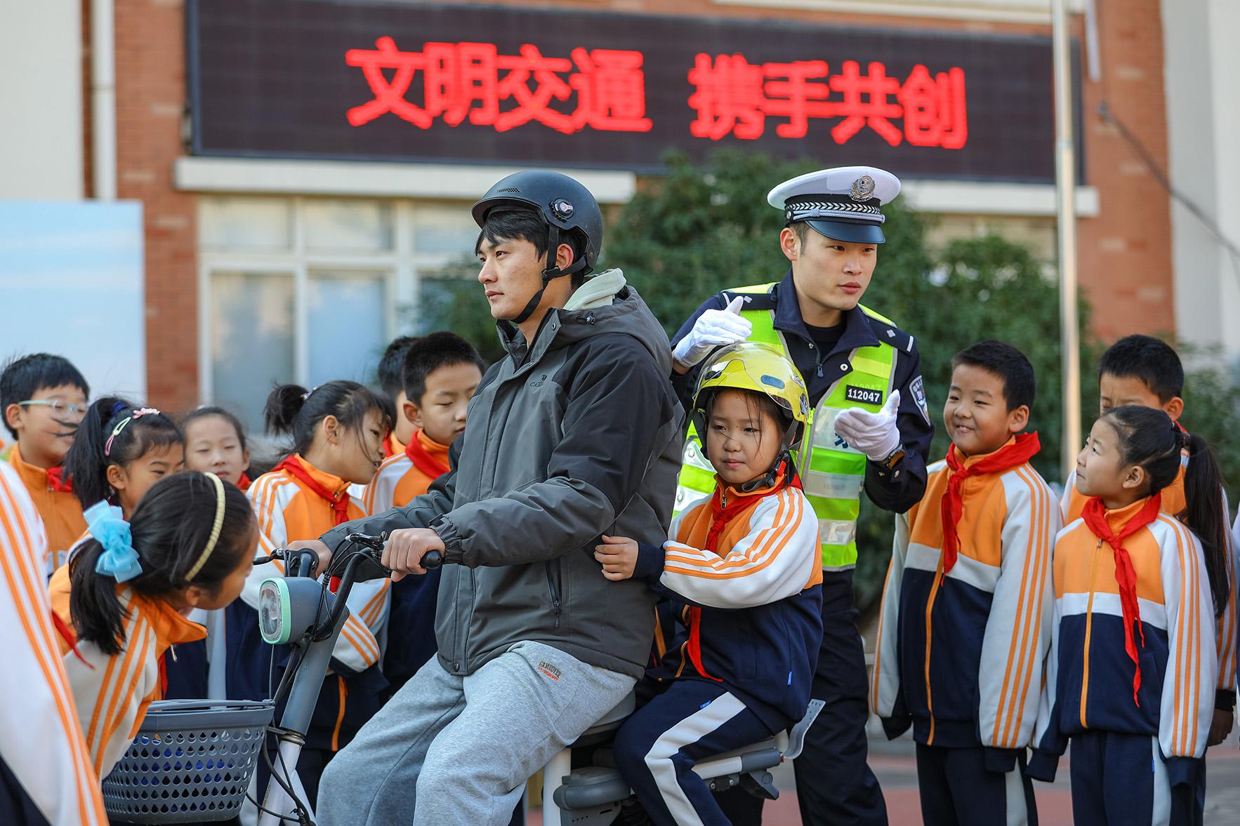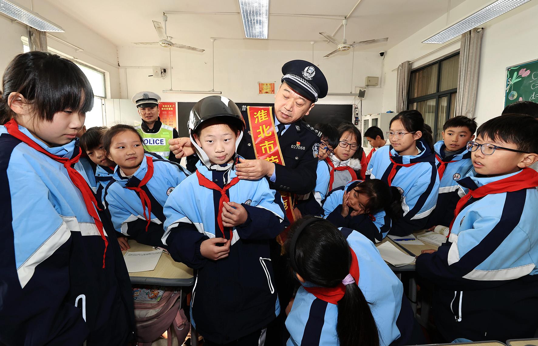 12月2日,安徽省淮北市濉溪縣公安局民警在實驗小學給同學們上交通安全課。