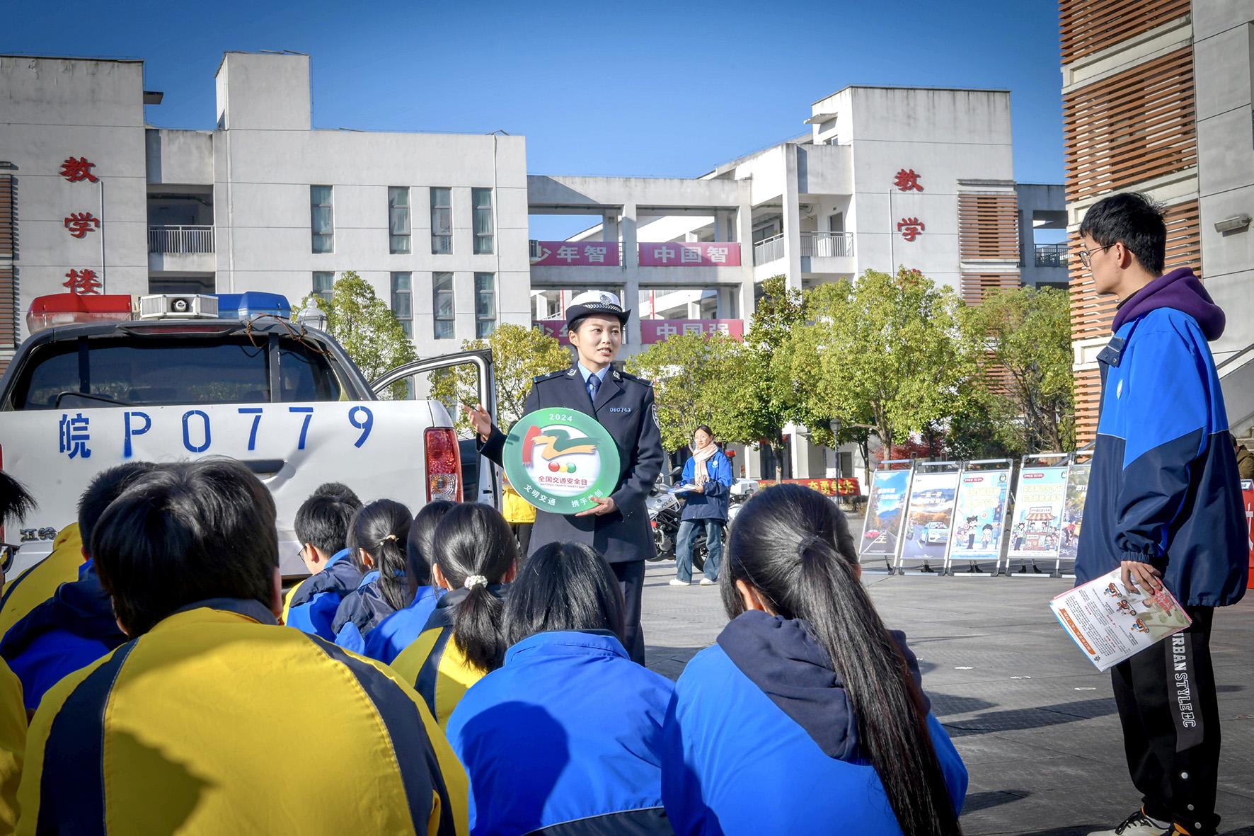 12月2日,安徽省舒城縣公安局交管大隊民警走進柏林鄉(xiāng)仁峰實驗學校課堂,向同學們開展以“文明交通 攜手共創(chuàng)”為主題的交通安全宣傳。