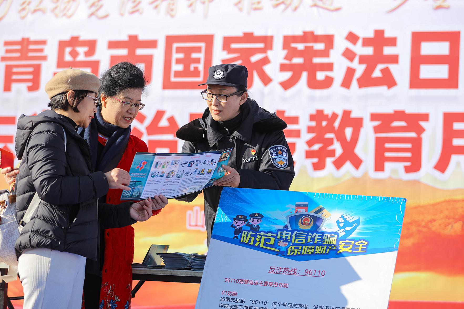 12月3日,山東省青島市李滄區(qū)司法、檢察、公安、稅務等10個部門,在工人文化宮開展憲法宣傳活動。