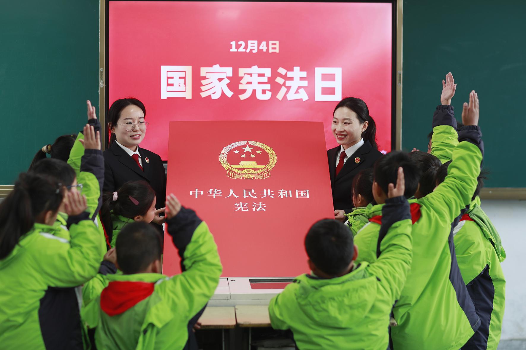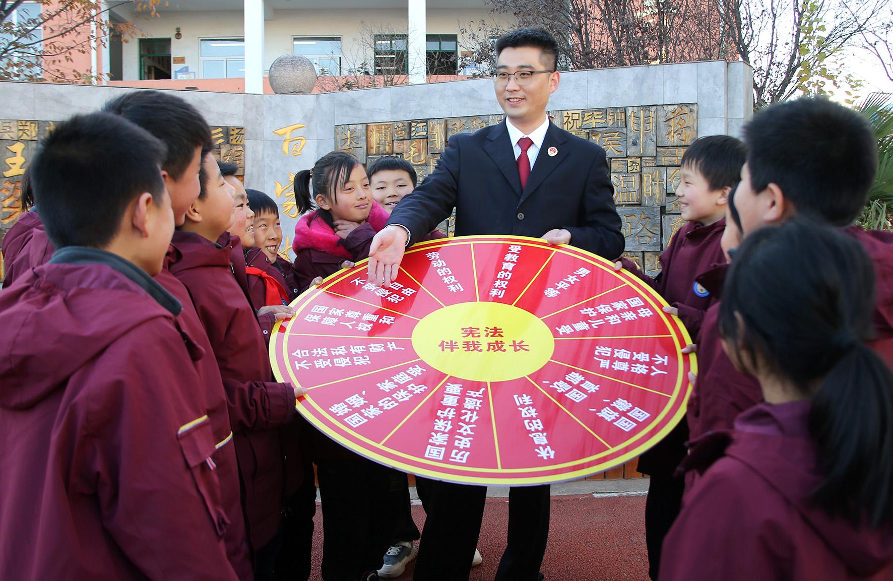 12月2日,山東省臨沭縣人民法院法官助理走進青云鎮(zhèn)中心小學,開展“法護青禾 與‘憲’同行”普法宣傳活動,普及憲法知識,弘揚憲法精神。