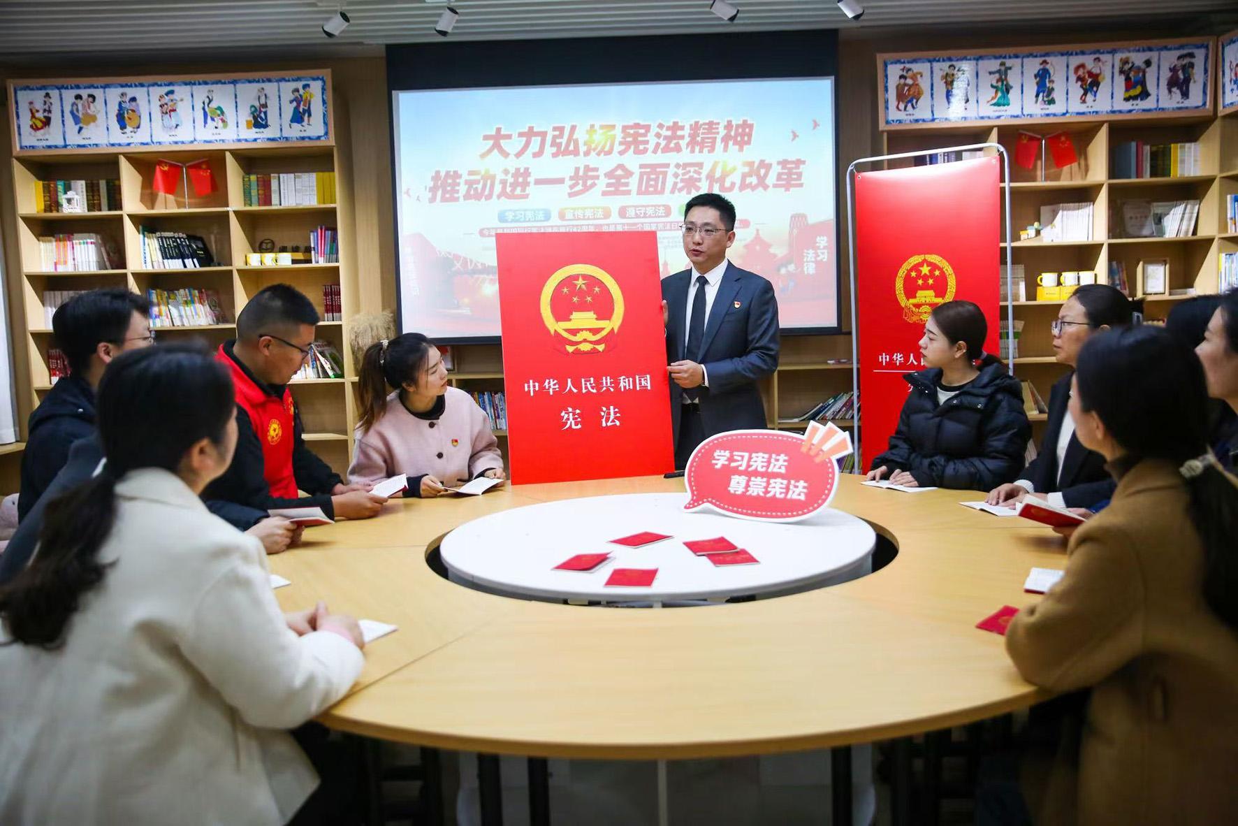 12月3日,山東省棗莊市市中區(qū)人民法院開展以“大力弘揚憲法精神 推動進一步全面深化改革”為主題的宣傳活動,兩名法官通過線上直播方式向觀眾宣傳憲法知識。