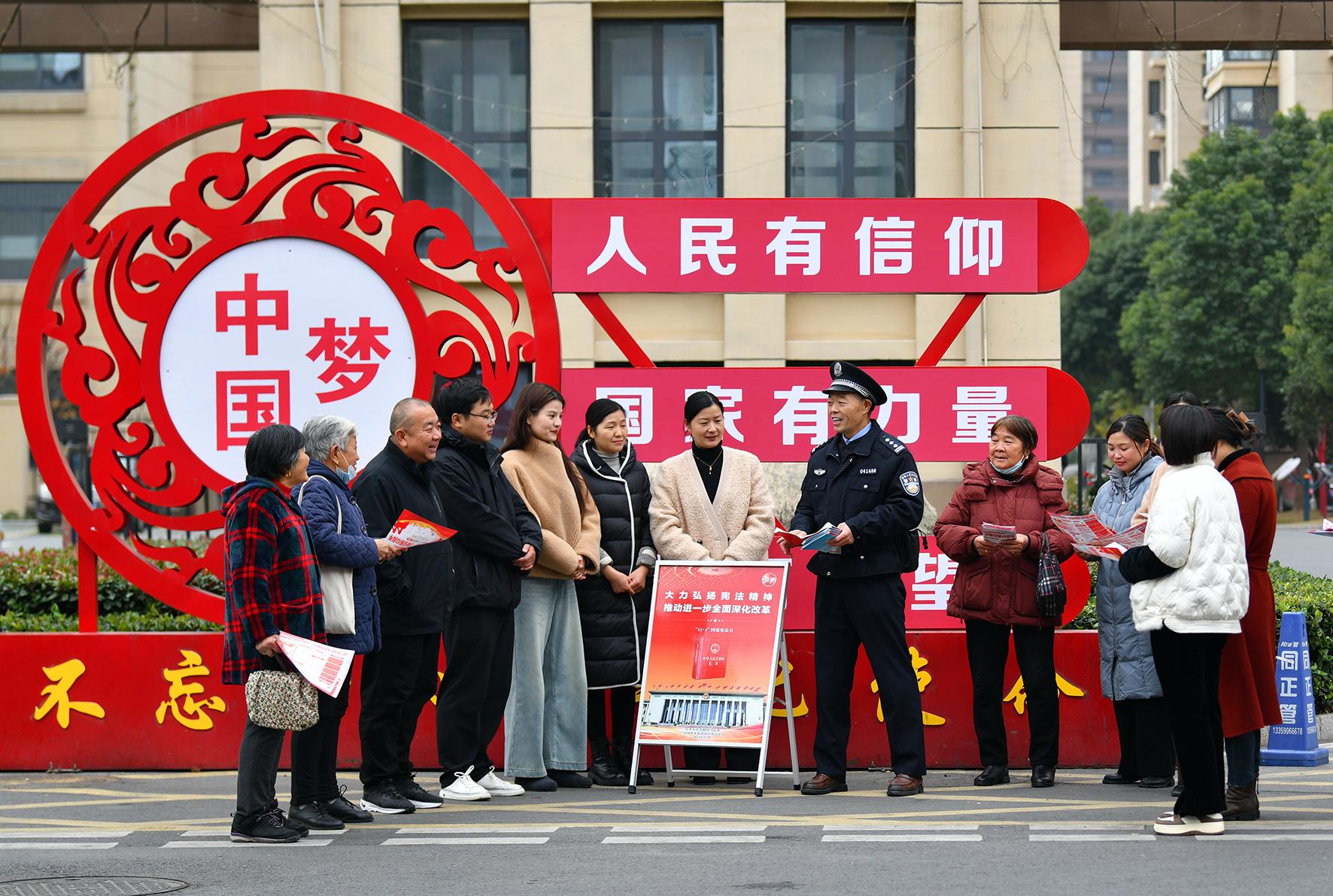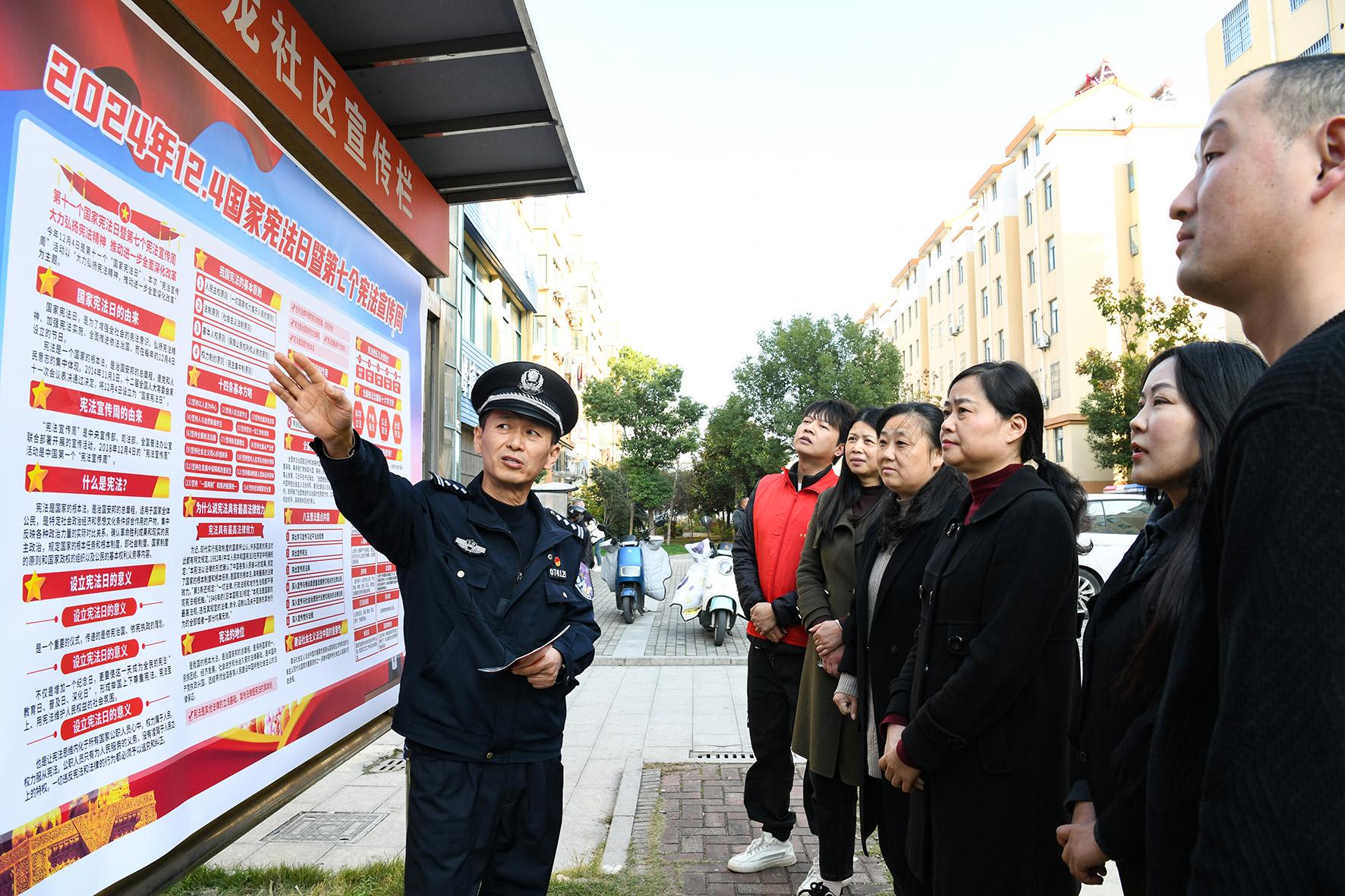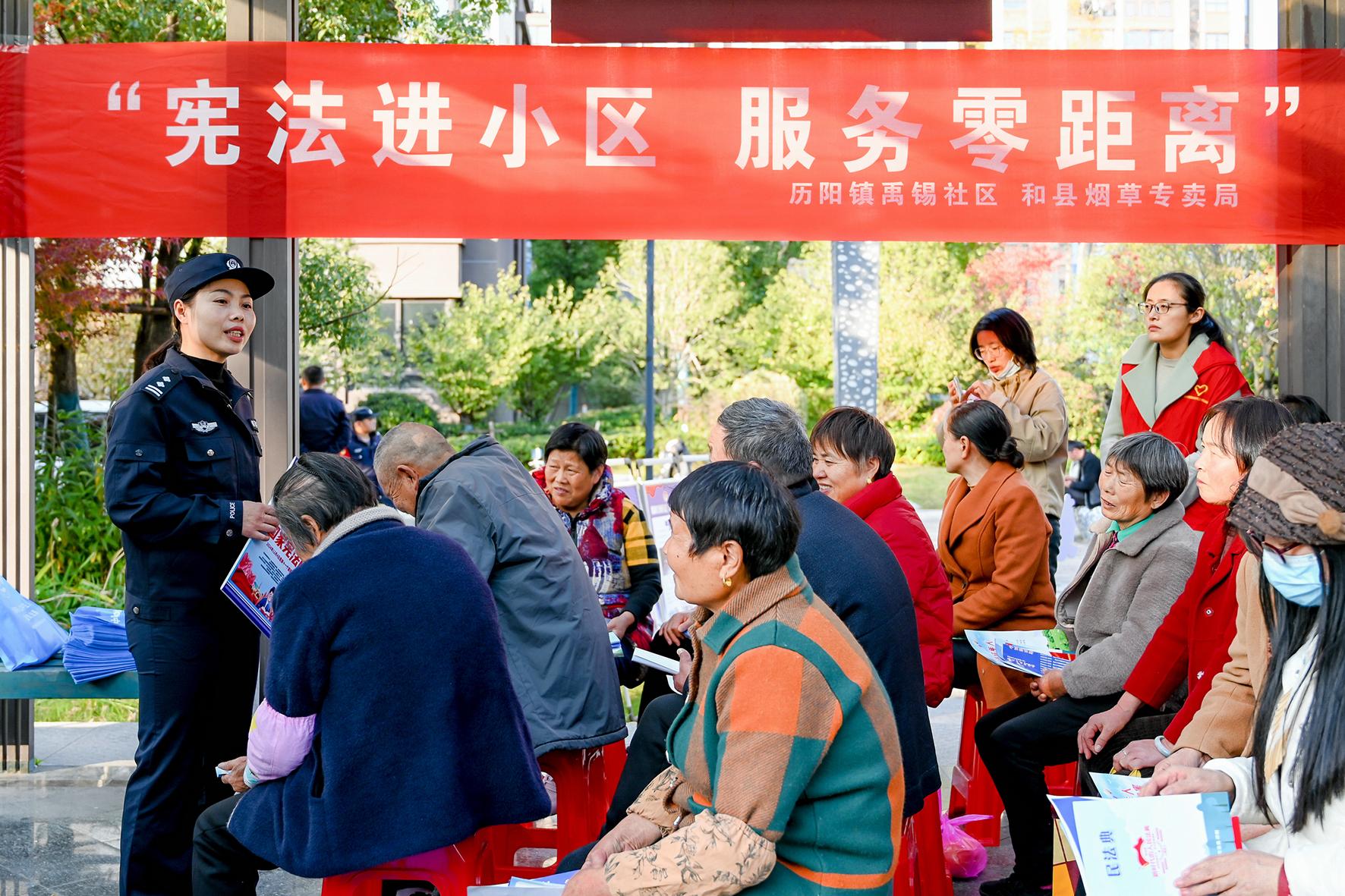 12月3日,安徽省馬鞍山市和縣公安局民警在歷陽鎮(zhèn)禹錫社區(qū)向居民宣講憲法知識。