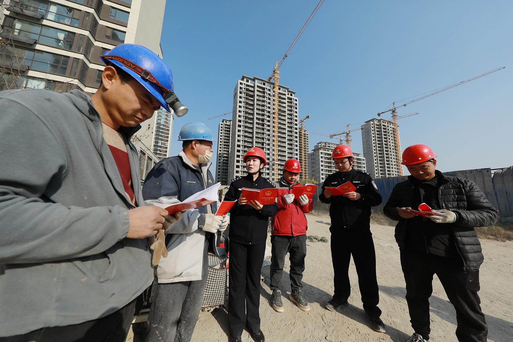 12月2日,山東省菏澤市曹縣公安局青菏派出所民警來到轄區(qū)建筑工地開展憲法宣傳活動。