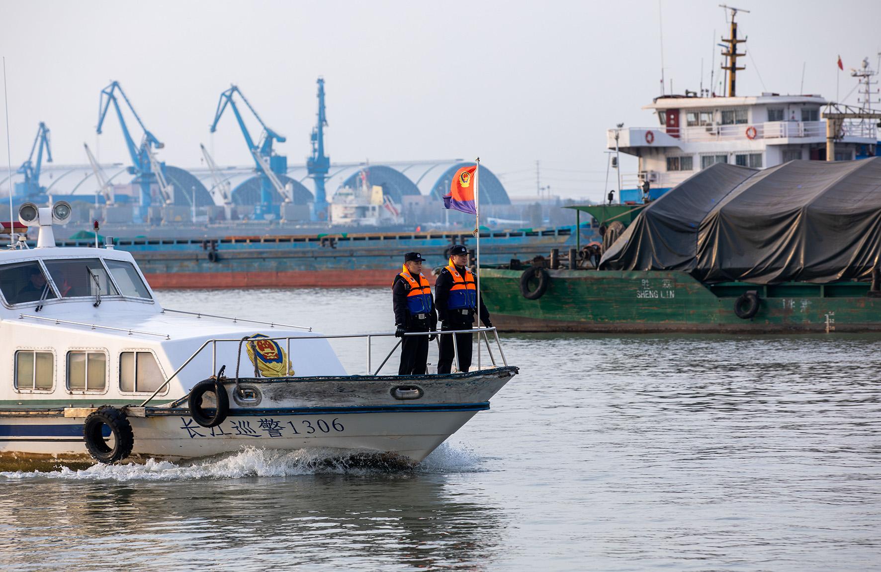 圖為12月22日,民警在長江江蘇鎮(zhèn)江段水域開展水上巡邏。
