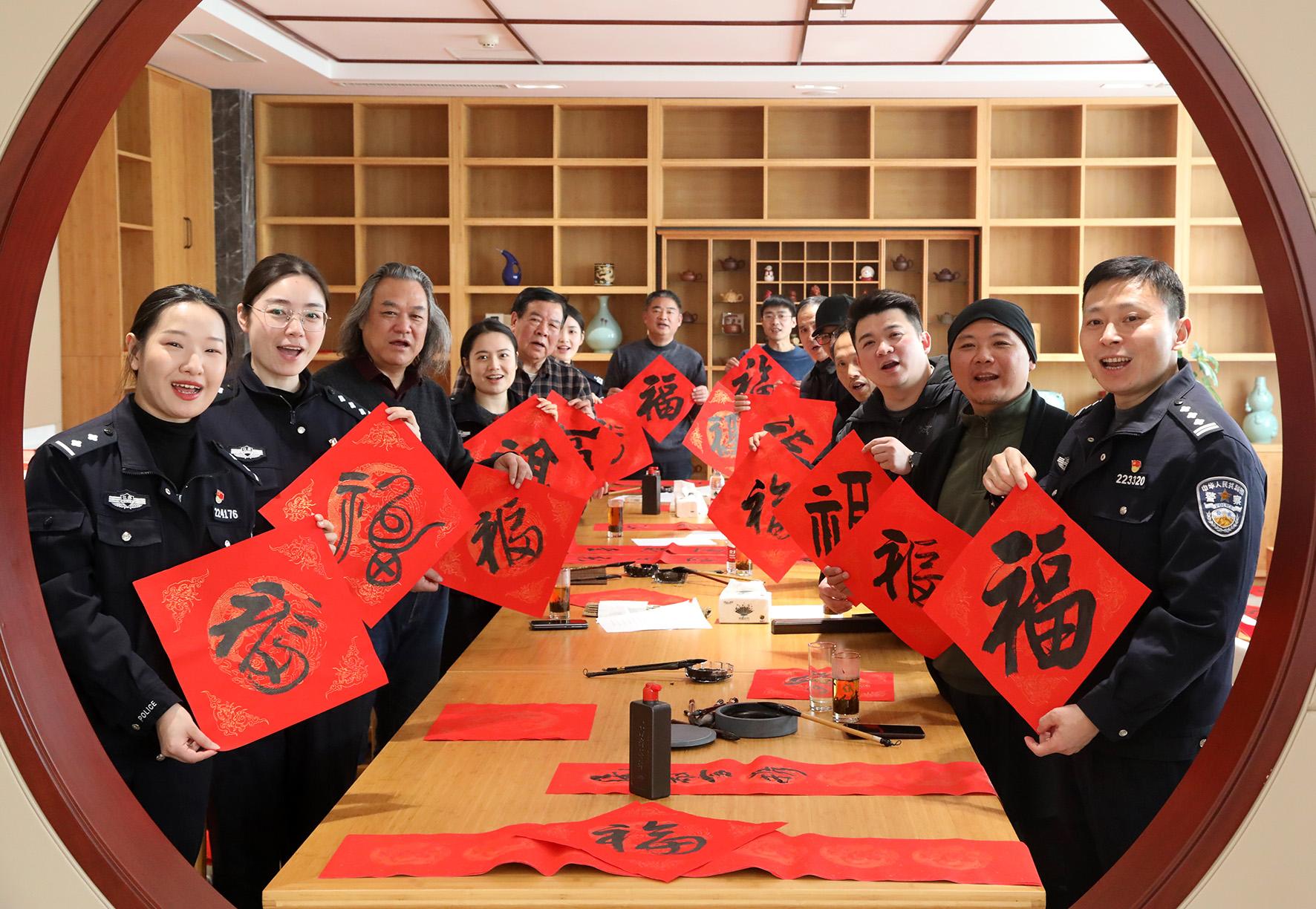 為弘揚(yáng)中華優(yōu)秀傳統(tǒng)文化,豐富警營文化生活,1月21日,江蘇省宜興市公安局丁山派出所開展“妙筆迎新春 潑墨送祝?!毙麓簳疫M(jìn)警營活動(dòng)。