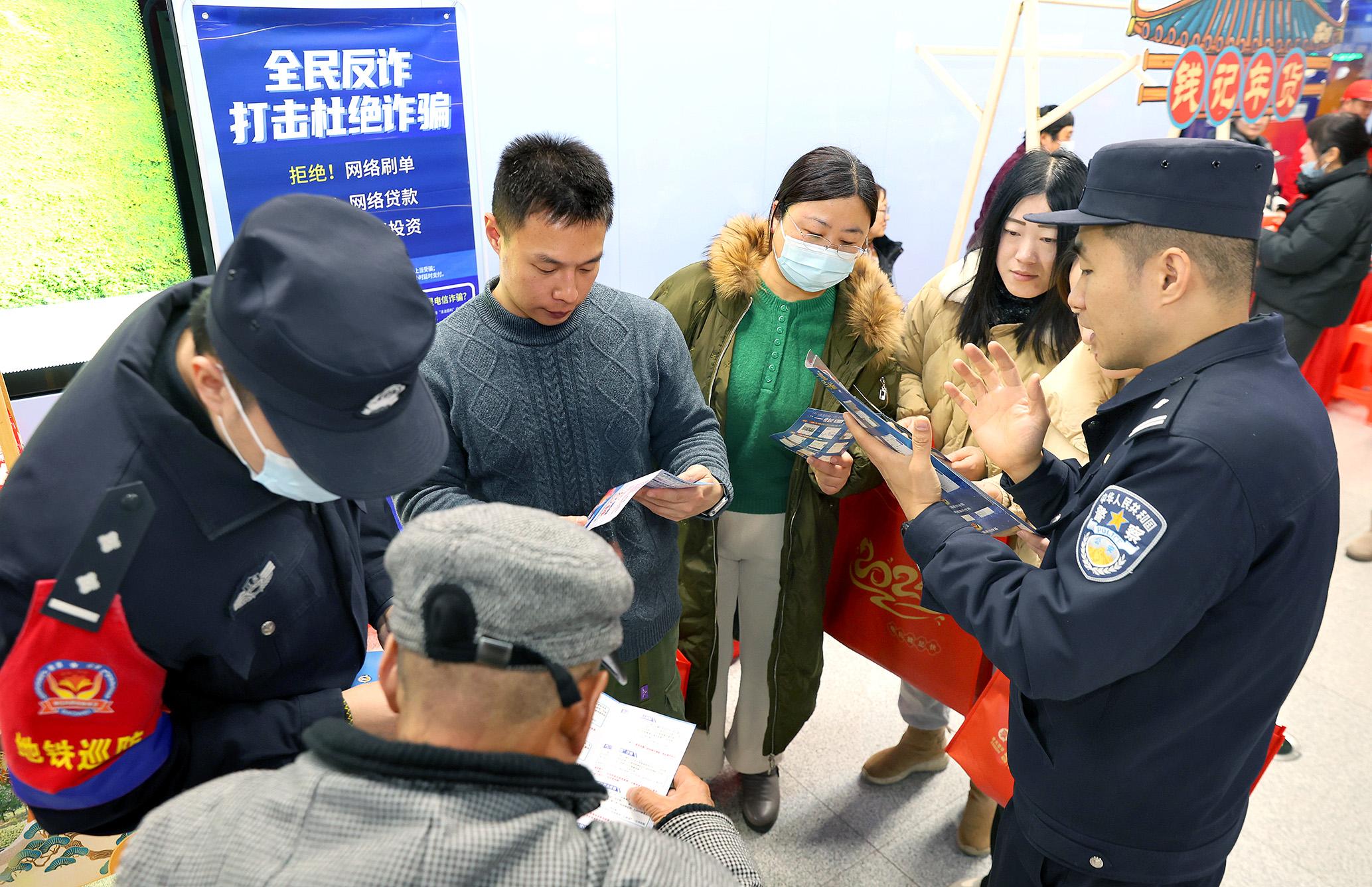 1月21日,江蘇省南通市公安局民警在地鐵2號(hào)線幸福站向市民進(jìn)行反詐宣傳。