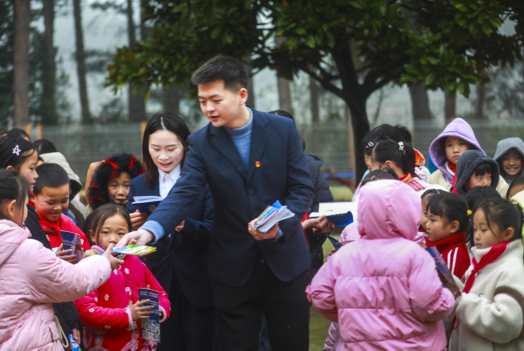 2月17日,在貴州省銅仁市玉屏侗族自治縣第四小學,檢察干警給學生講解法律知識。