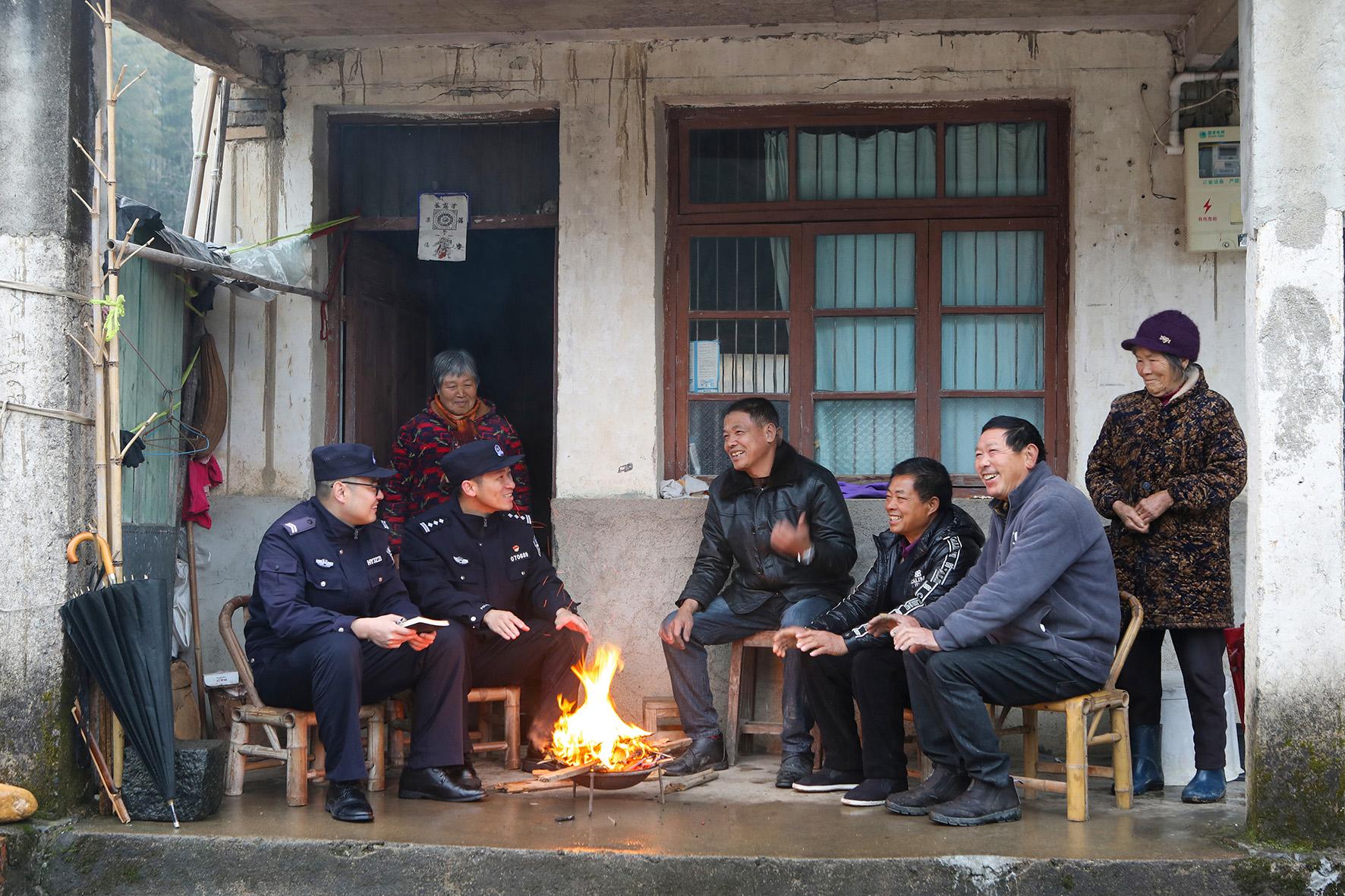 2月20日,浙江省臺州市公安局黃巖分局寧溪派出所民警來到位于山區(qū)的上檜村走村入戶,開展矛盾糾紛化解、安全防范宣傳。