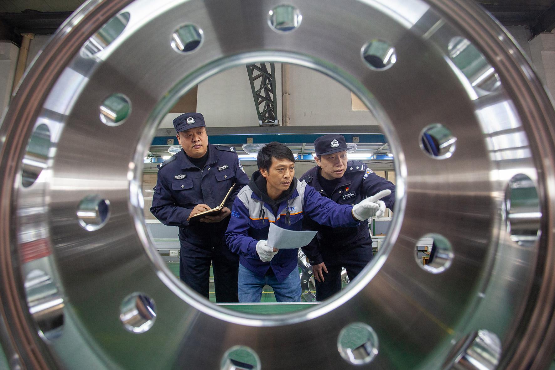 2月24日,浙江省臺州市公安局黃巖分局江口派出所民警來到轄區(qū)內(nèi)的重點企業(yè)開展安全檢查,消除安全隱患,并征求企業(yè)對公安工作的意見建議。