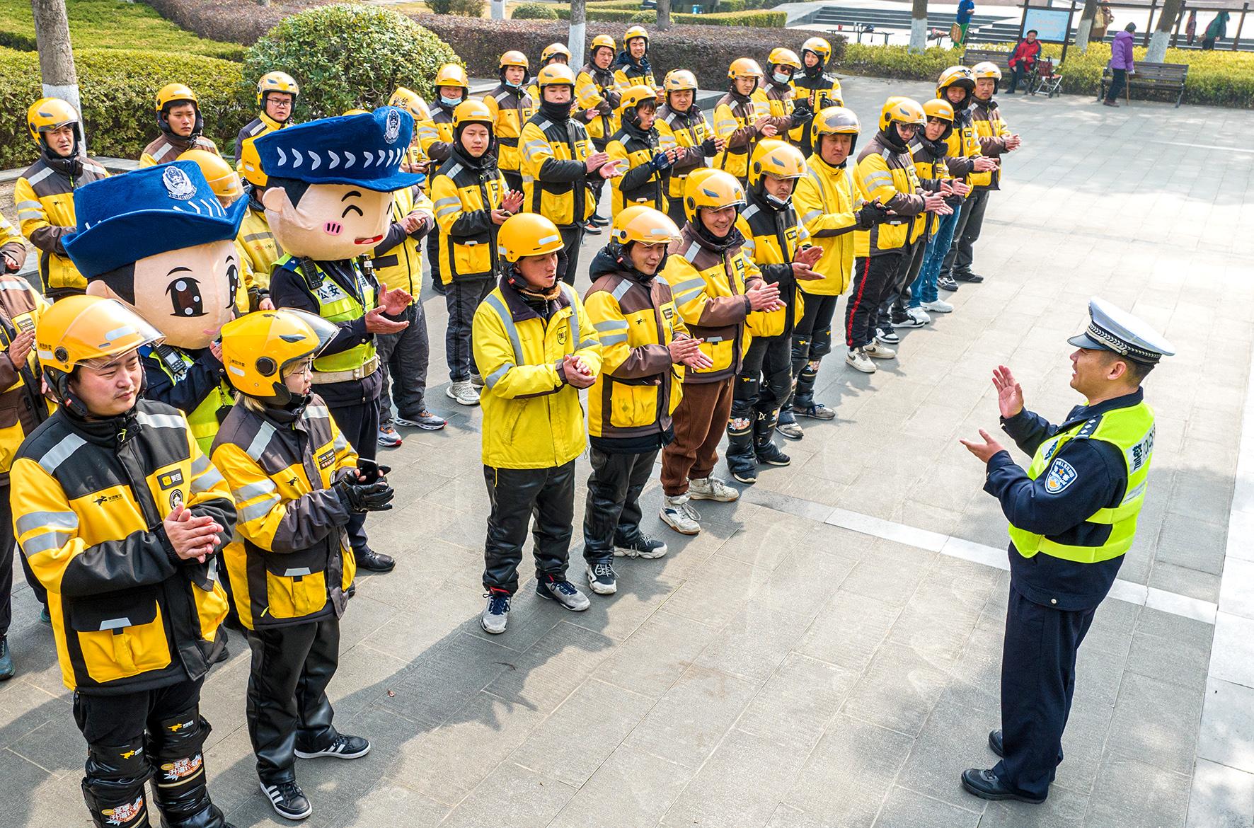 2月26日,上海市公安局崇明分局交警支隊(duì)民警來到轄區(qū)南門廣場向外賣騎手開展交通安全宣傳。