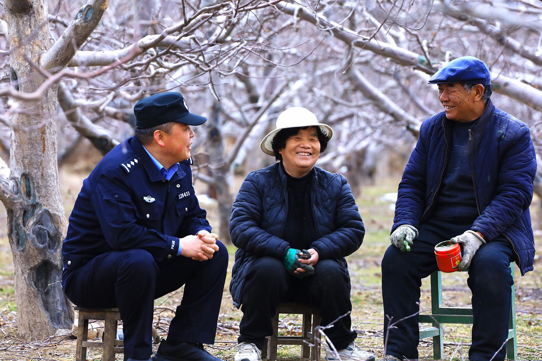 3月4日,甘肅隴南禮縣公安局永興派出所民輔警走進(jìn)田間地頭,了解群眾春耕生產(chǎn)需求,開展法治宣傳。