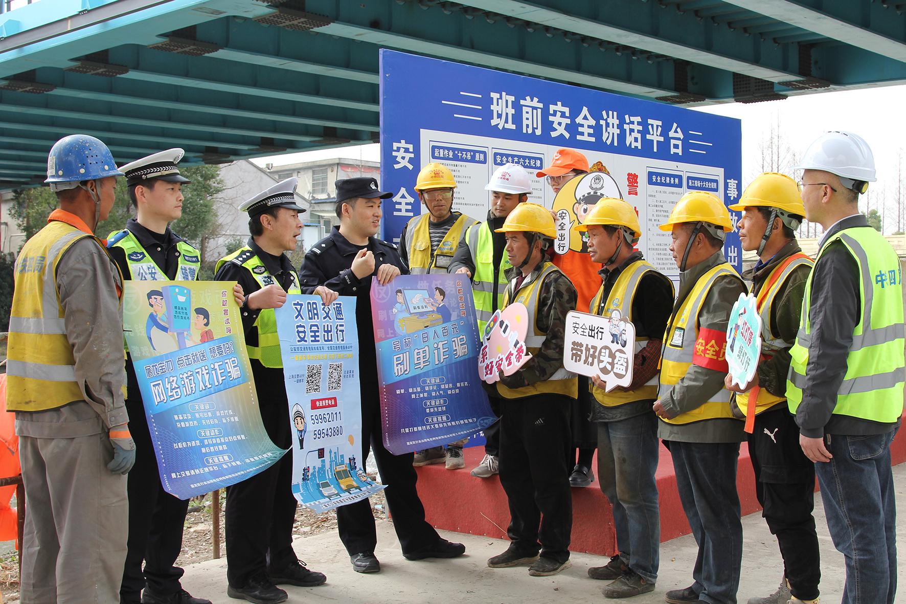 3月11日,上海市公安局嘉定分局交警支隊(duì)、徐行派出所民輔警會(huì)同平安志愿者走進(jìn)滬渝蓉鐵路滬寧段二標(biāo)二分部建設(shè)工地,向務(wù)工人員開(kāi)展交通安全、人口信息自主申報(bào)、反詐騙等知識(shí)宣講。