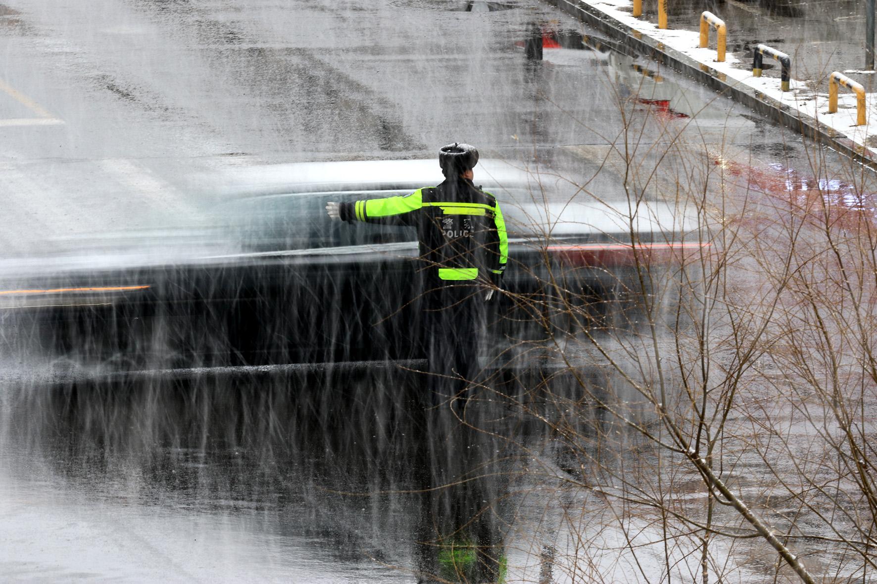 3月17日,遼寧省阜新市出現(xiàn)降雪天氣。阜新市公安局交通警察支隊細(xì)河交警大隊組織警力加大路面管控和指揮疏導(dǎo)力度,確保群眾平安出行。