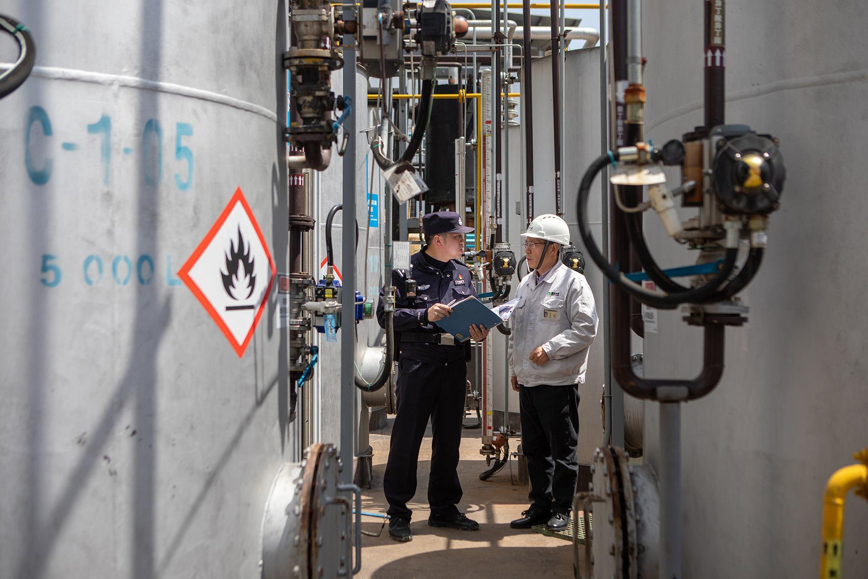 4月2日,浙江省臺(tái)州市公安局黃巖分局江口派出所民警輔警在一家制藥廠開展安全檢查。