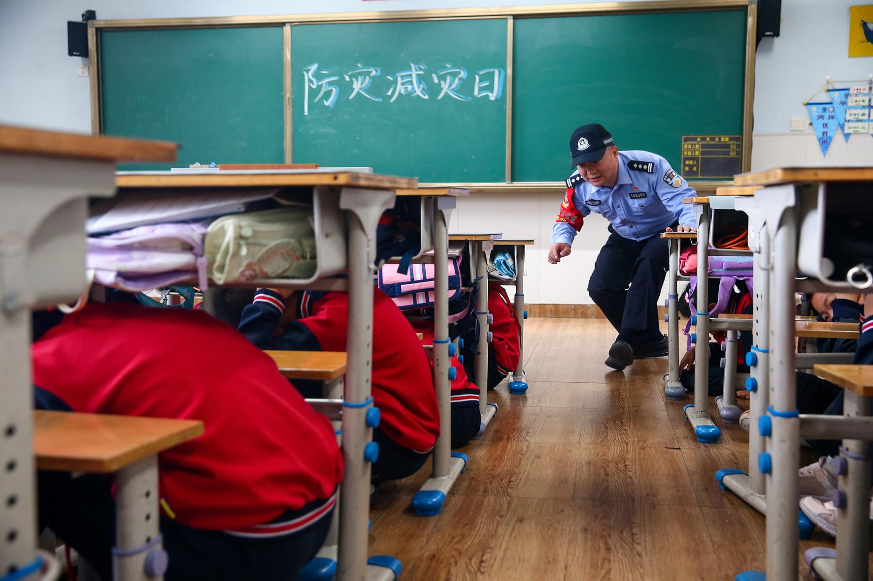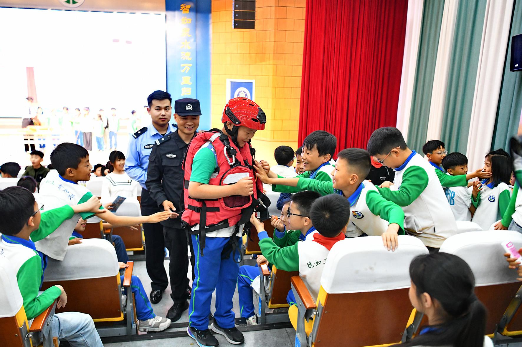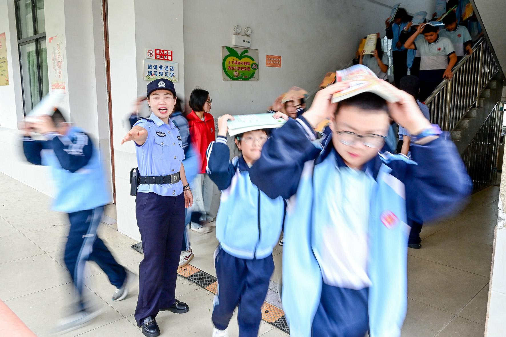 5月9日,在山東省濟(jì)南市泉海小學(xué),濟(jì)南市公安局市中區(qū)分局七賢派出所與仁賢社區(qū)組織藍(lán)天救援隊(duì)志愿者對(duì)學(xué)生開展防災(zāi)減災(zāi)安全教育,增強(qiáng)孩子們避險(xiǎn)意識(shí)和自救能力。