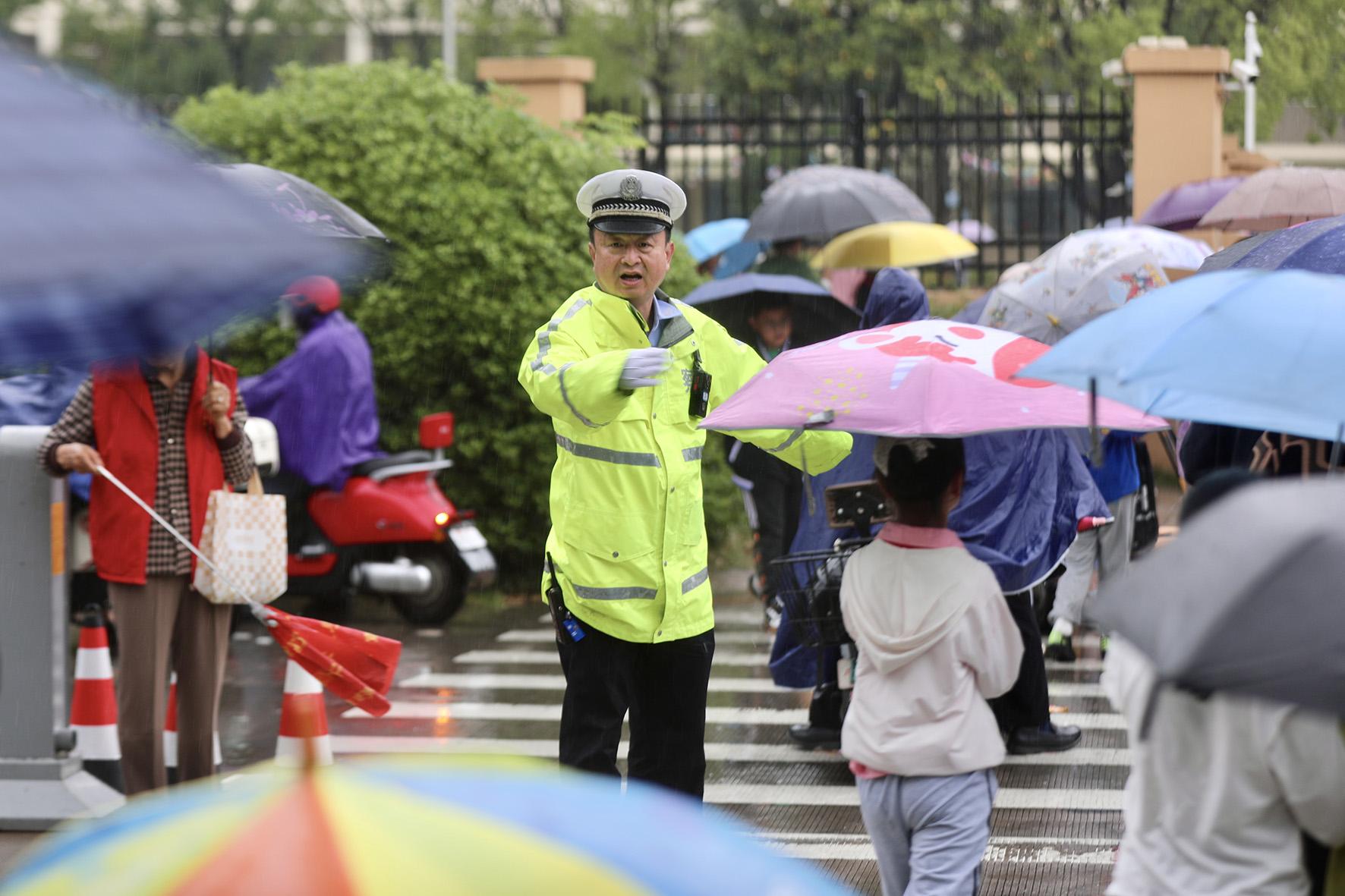 5月8日14時左右,安徽省合肥市普降大雨。合肥市公安局交警支隊公巡一大隊采取有力措施加強雨天道路交通管控,堅守“護學崗”,暖心護航平安路。