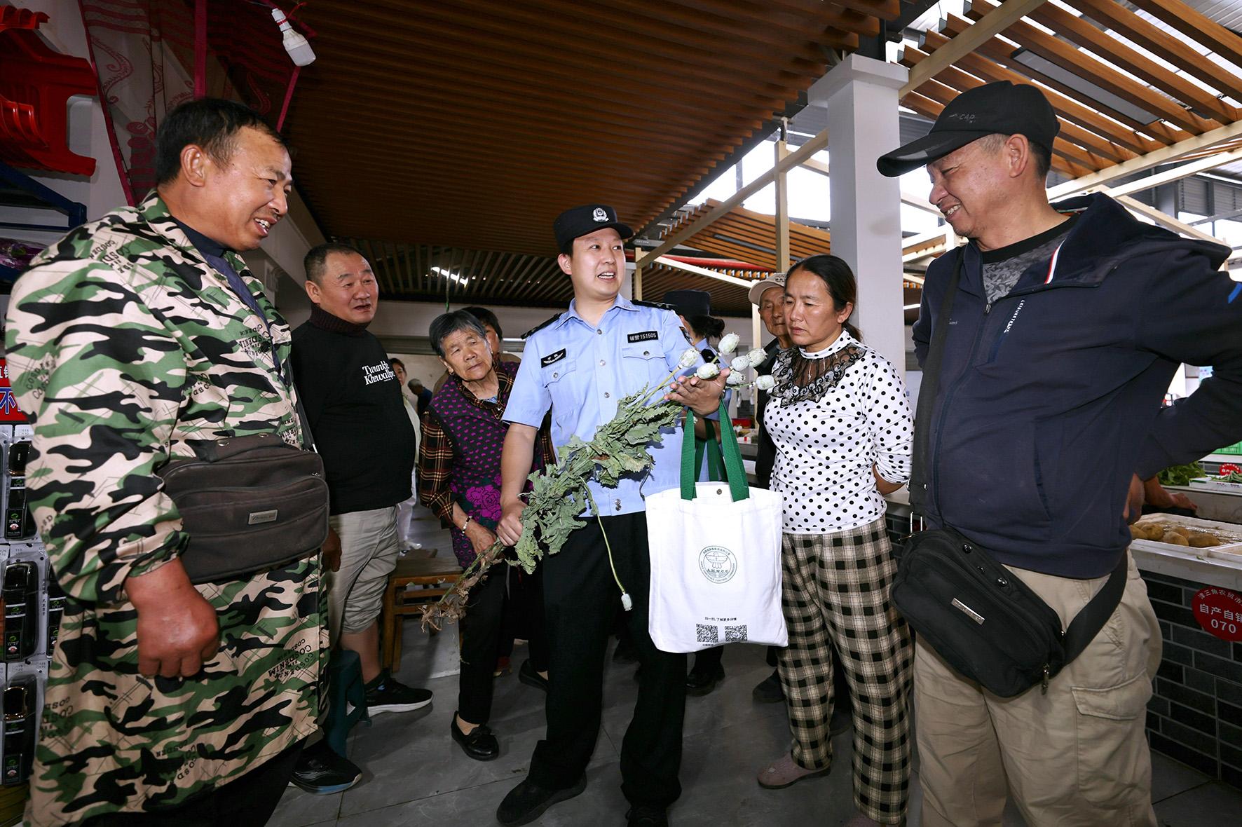 5月13日,安徽省寧國市公安局河瀝溪派出所開展禁毒宣防進(jìn)集市活動。