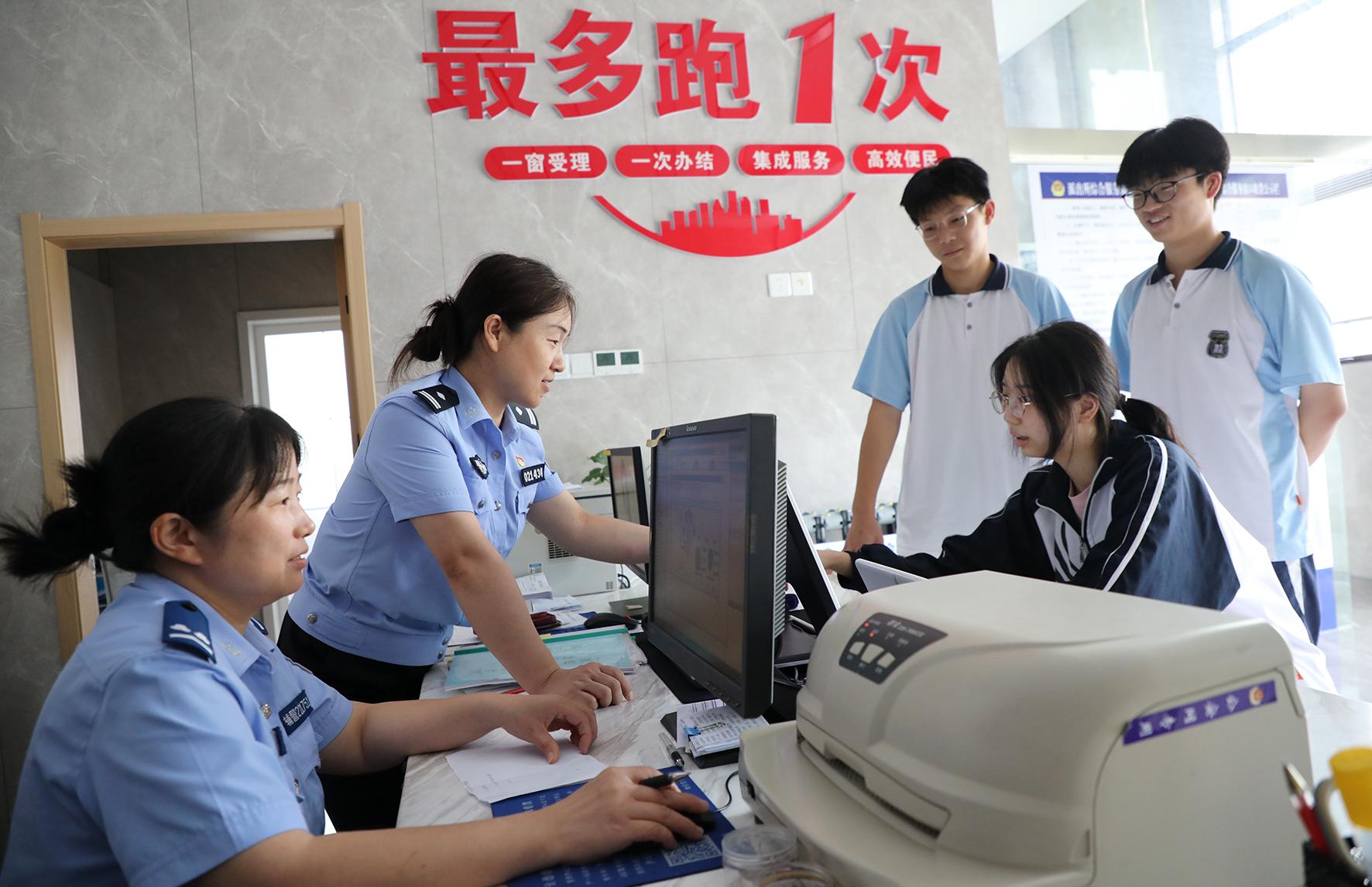 5月20日,江西省九江市公安局濂溪分局劉家塘派出所為考生開(kāi)設(shè)辦證“綠色通道”,戶(hù)籍窗口民警周末和午休時(shí)間一律在崗,采取延時(shí)、錯(cuò)時(shí)、預(yù)約等方式為學(xué)生辦證提供24小時(shí)服務(wù)。