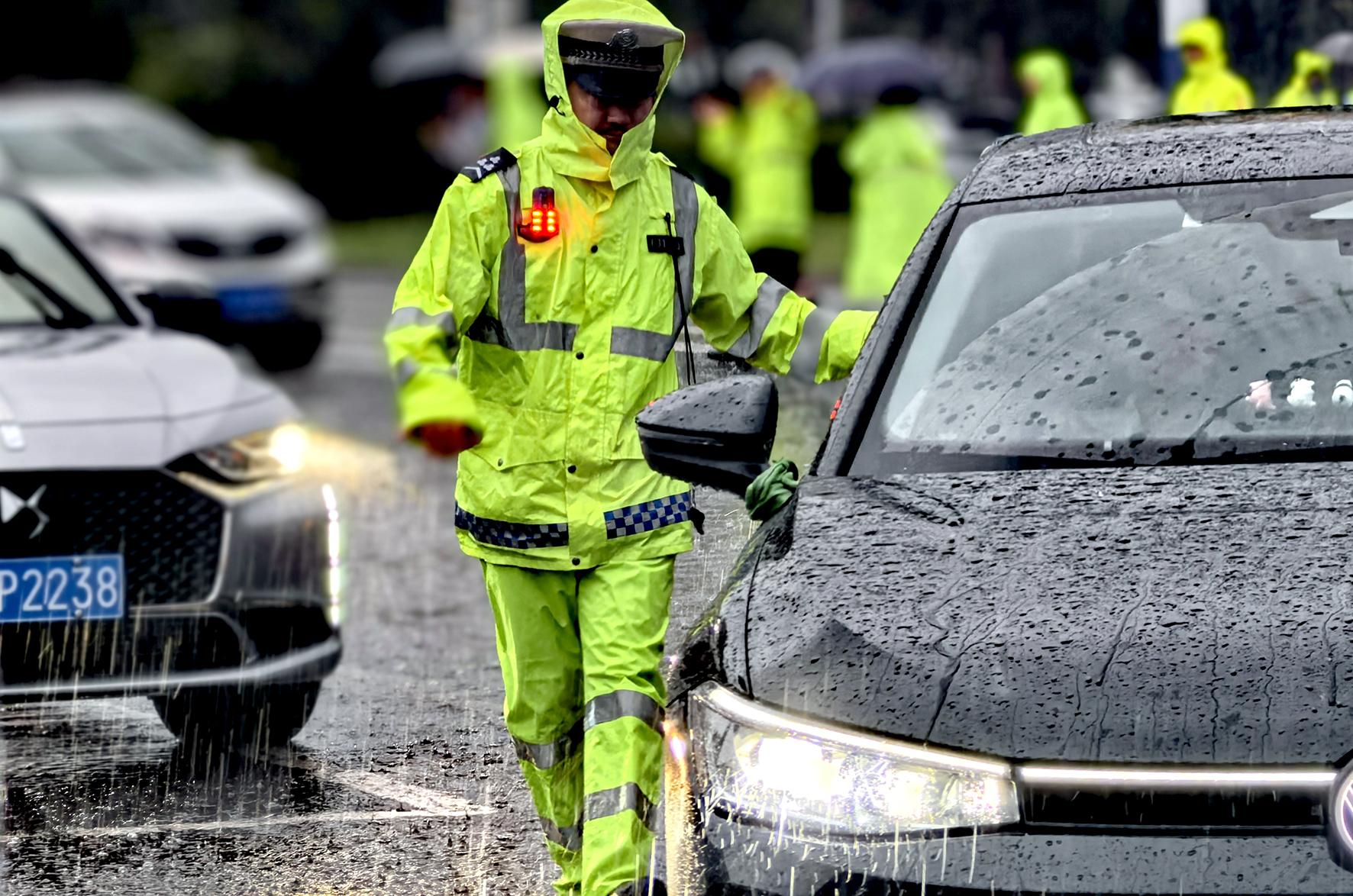 6月7日,安徽省蕪湖市迎來(lái)雷雨大風(fēng)天氣。蕪湖市公安局交警支隊(duì)全警提前上崗,雨中指揮疏導(dǎo)交通,服務(wù)考生,全力護(hù)航莘莘學(xué)子追夢(mèng)之路。