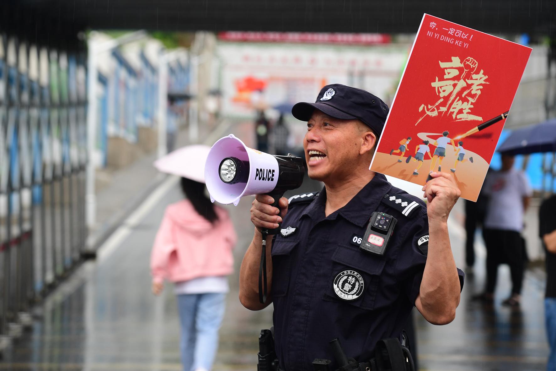 6月7日,江蘇省南通市在雨中迎來(lái)高考。南通市公安局民警全警動(dòng)員,堅(jiān)守崗位,護(hù)航學(xué)子圓夢(mèng)。