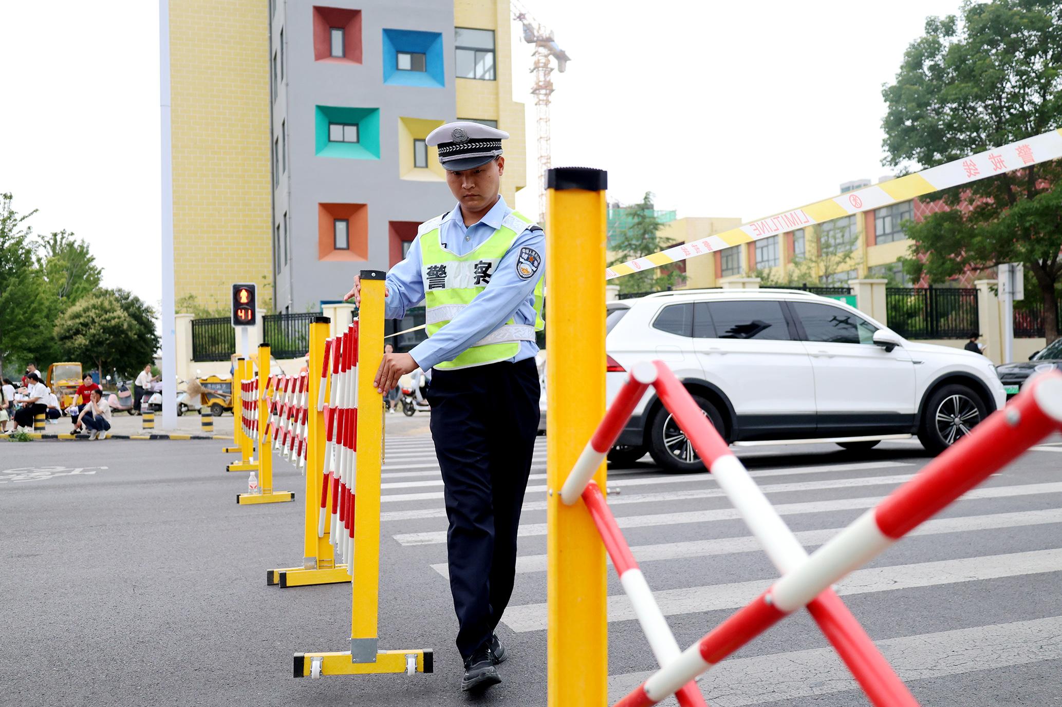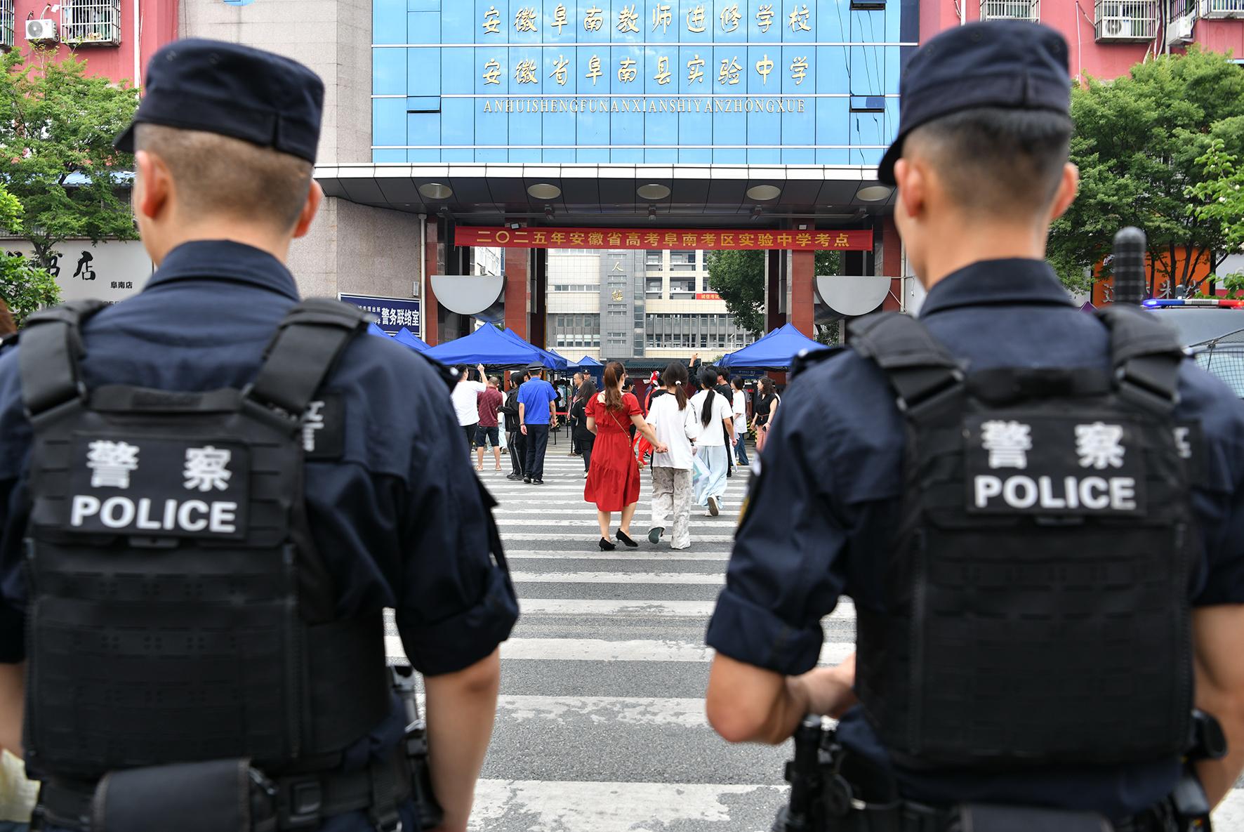 6月7日,安徽省馬鞍山市和縣公安局民警在和縣第一中學(xué)考點(diǎn)維護(hù)秩序。