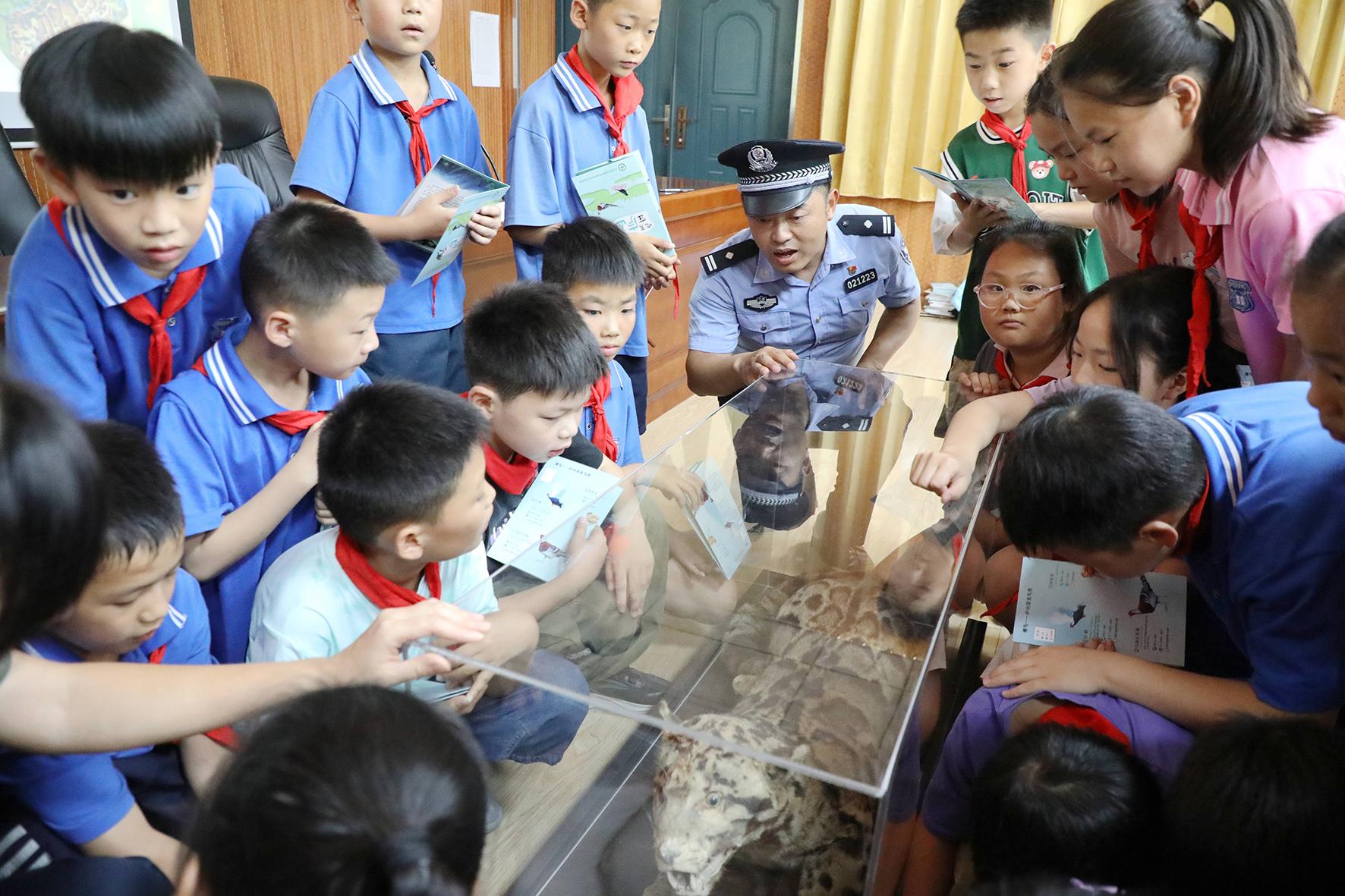 6月18日,江西省九江市公安局濂溪分局妙智派出所民警聯(lián)合廬山國(guó)家級(jí)自然保護(hù)區(qū)管理局工作人員來(lái)到轄區(qū)愛(ài)蓮小學(xué)開(kāi)展“保護(hù)野生動(dòng)物 共享綠色生態(tài)”普法宣傳活動(dòng)。