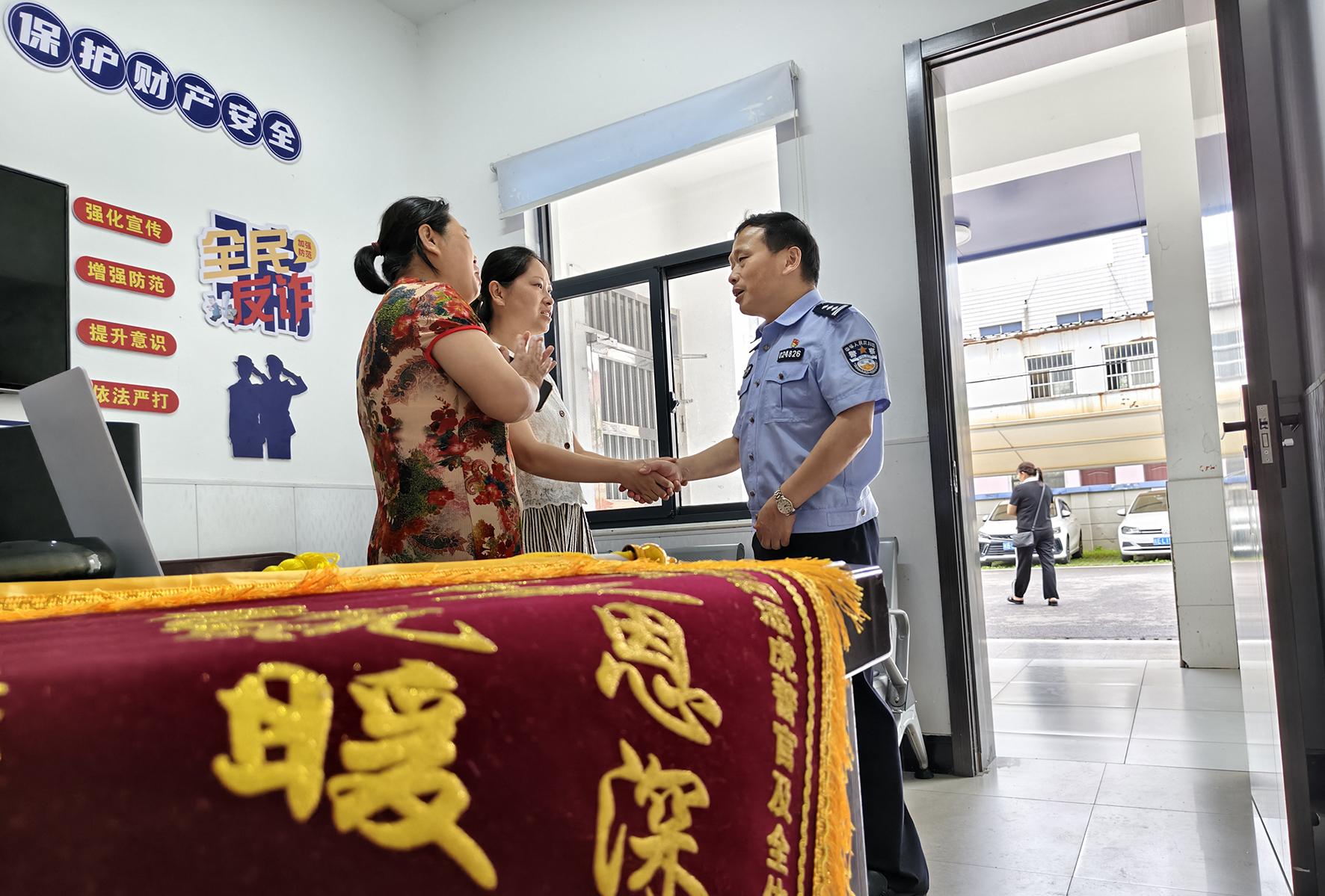 6月20日一大早,安徽省當(dāng)涂縣石橋鎮(zhèn)的兩位村民來到石橋派出所,給民警送上了一面“尋母之恩深似海 為民解憂暖人心”錦旗,感謝民警幫助其找回走失的母親。