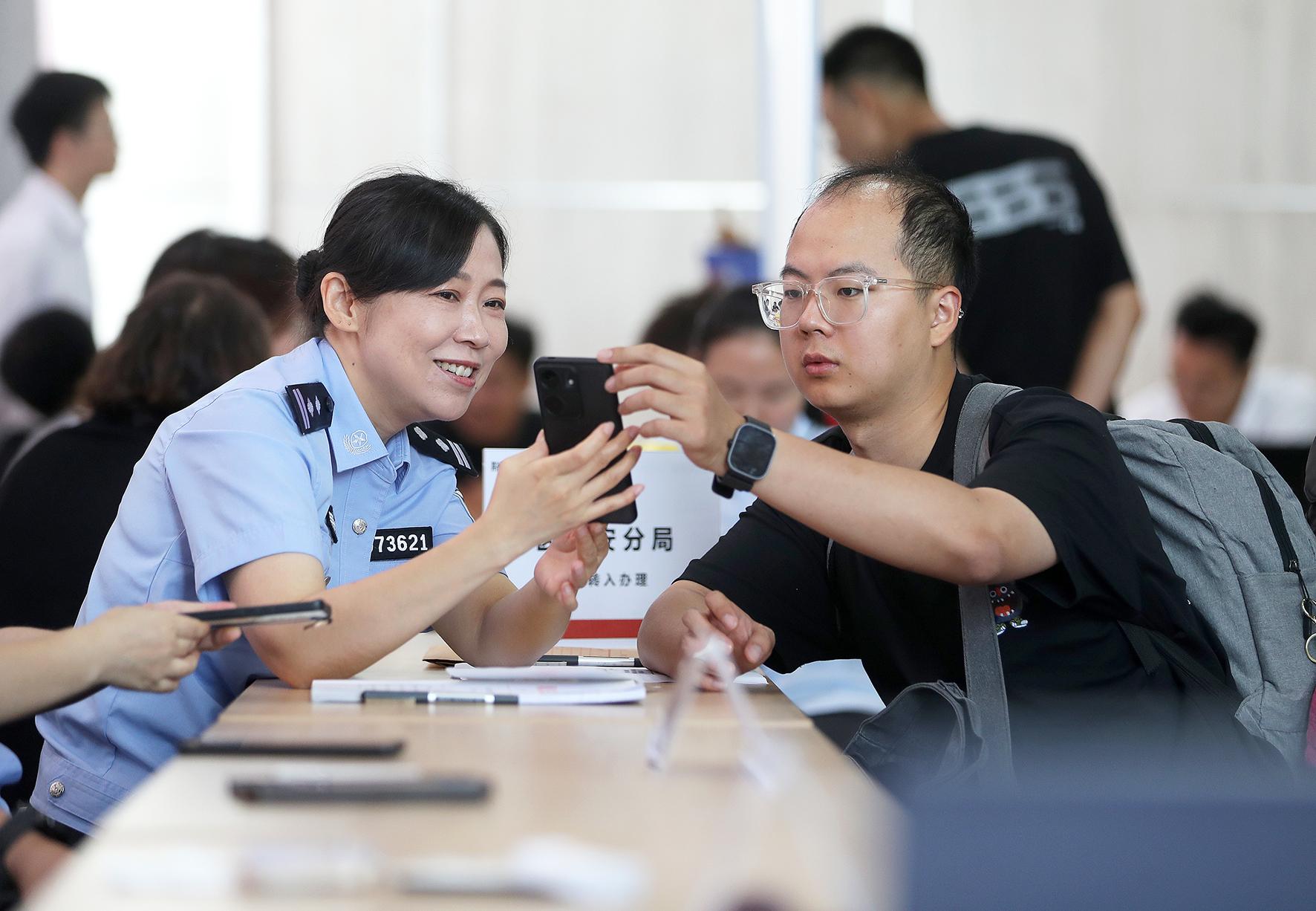 7月11日,湖北省荊門市公安局高新區(qū)·掇刀區(qū)分局掇刀石派出所將戶政窗口前移至企業(yè)園區(qū),通過“湖北公安政務(wù)服務(wù)平臺(tái)”為新入職大學(xué)生現(xiàn)場辦理戶籍遷移手續(xù)。