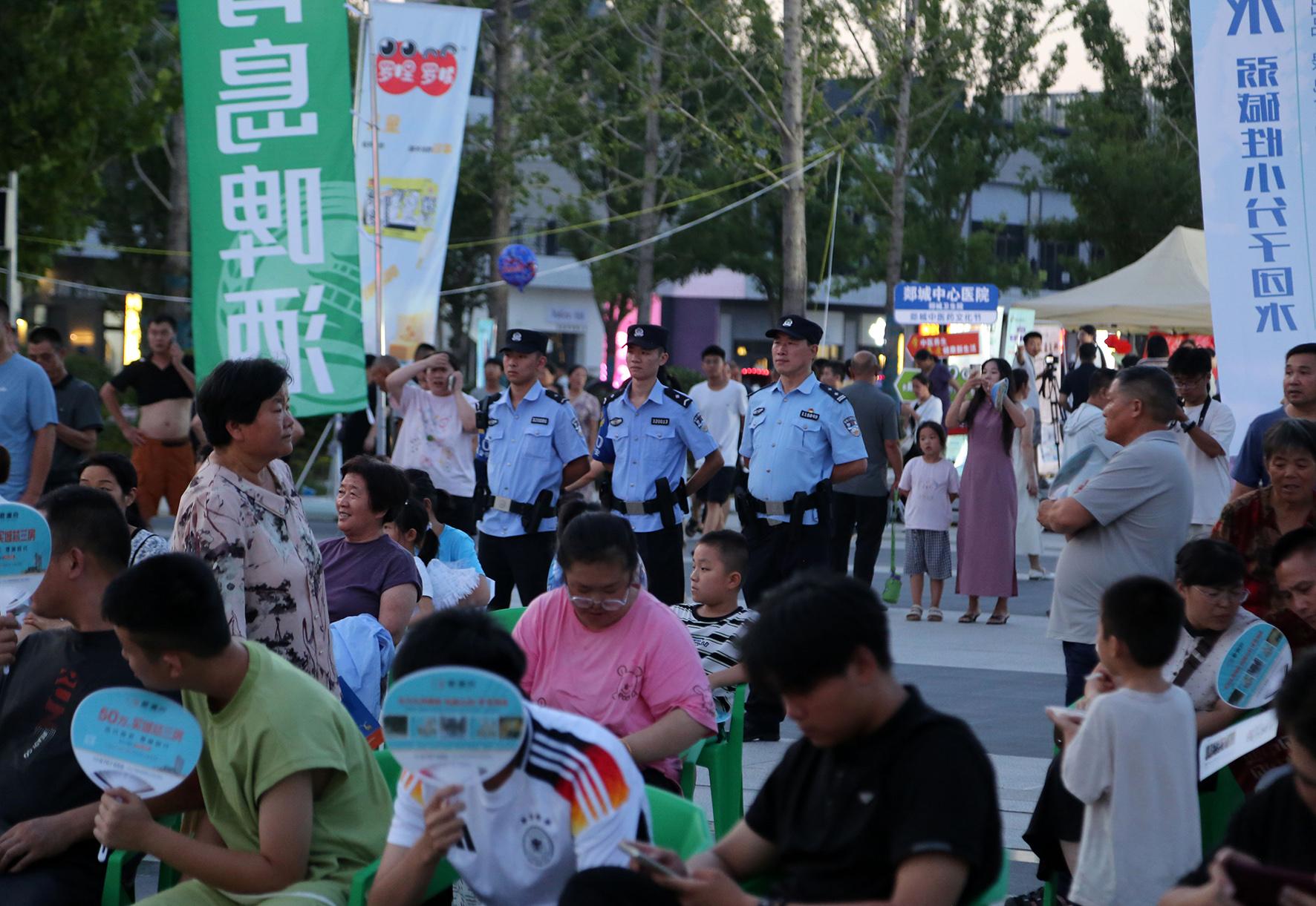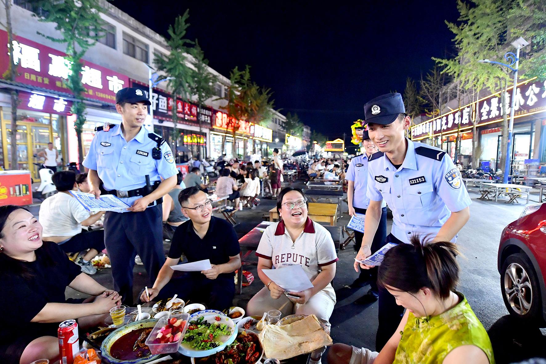 7月27日,山東省郯城縣公安局開啟“夜間警務”模式,民輔警在人流密集區(qū)執(zhí)勤。