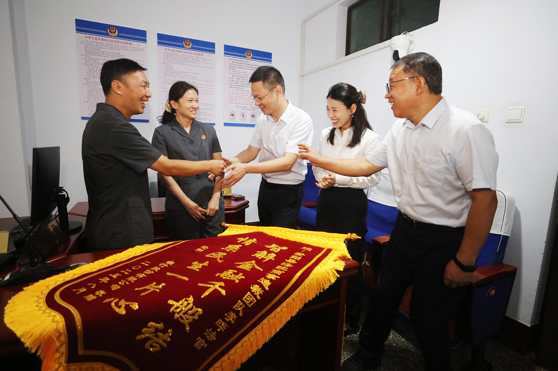 8月4日,河南省安陽(yáng)縣人民法院法官利用周末上門調(diào)解一起金融借款合同糾紛案后,當(dāng)事人將一面印有“智解金融千般結(jié) 情系民生一片心”的錦旗送到了法官手中,以表謝意。