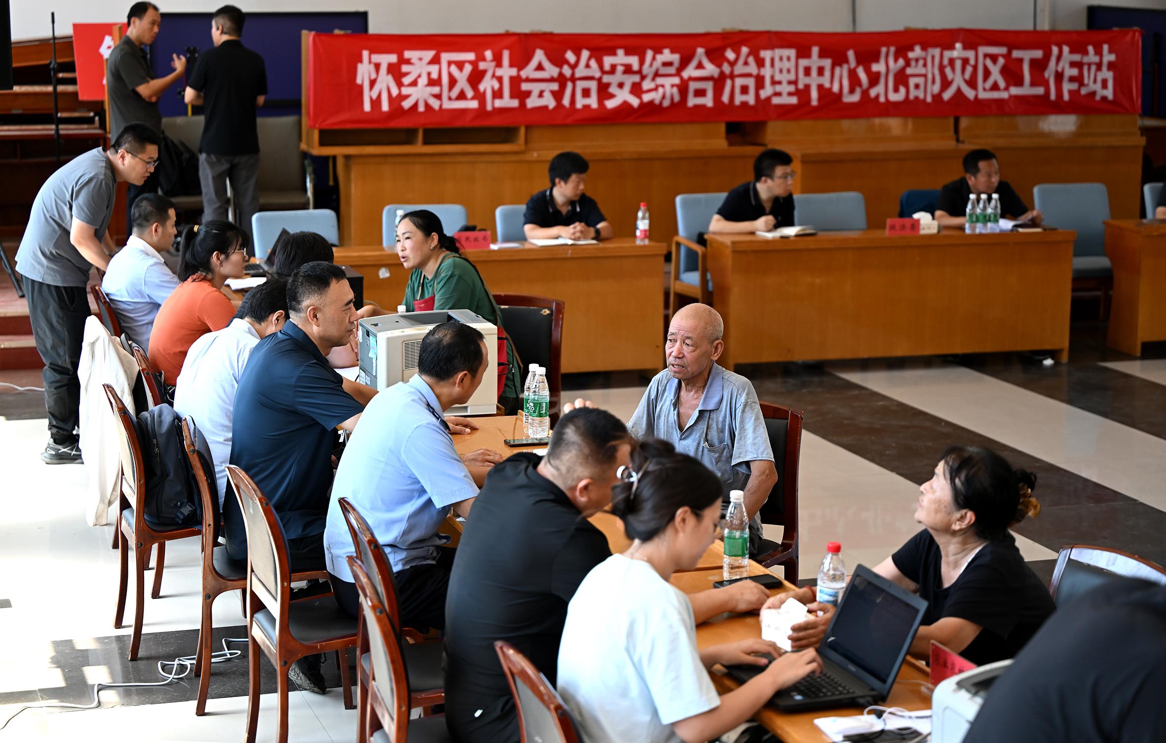 “回村一下車(chē),沒(méi)想到有這么多政府部門(mén)的工作人員在這兒,看到他們,心里就不慌了。”8月6日,剛從北京市懷柔區(qū)轉(zhuǎn)移安置點(diǎn)返回家園的村民孫大媽感慨。與孫大媽一同“抵達(dá)”的,還有一家臨時(shí)“綜治中心”,在當(dāng)天正式運(yùn)行。此前,懷柔區(qū)依托綜治中心機(jī)制模式,在受災(zāi)嚴(yán)重的琉璃廟鎮(zhèn)成立了由區(qū)委政法委牽頭、多部門(mén)協(xié)同聯(lián)動(dòng)的政策咨詢服務(wù)中心,向前一步主動(dòng)服務(wù)受災(zāi)群眾。