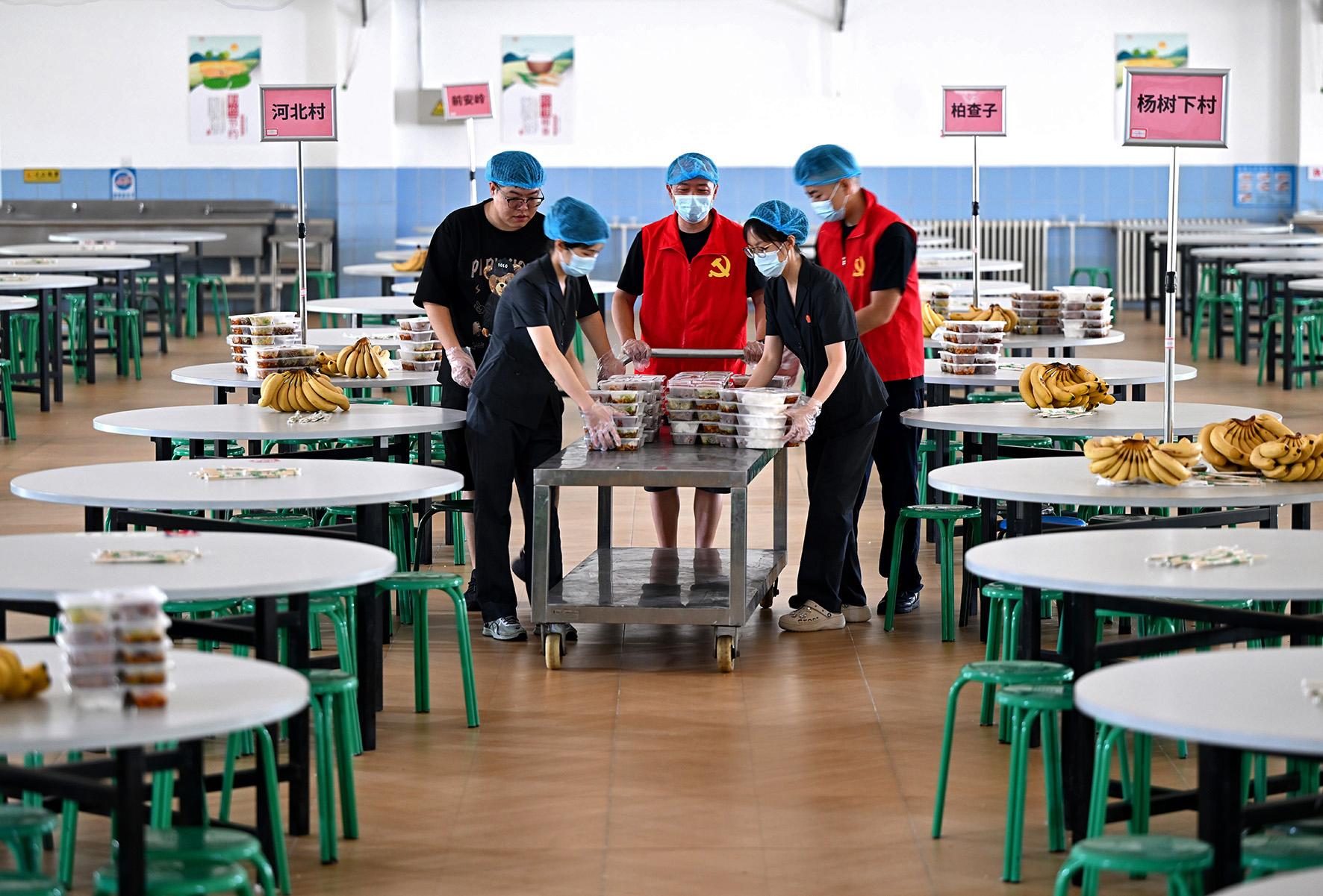 8月4日,懷柔區(qū)人民法院防汛小分隊(duì)在學(xué)生軍訓(xùn)基地安置點(diǎn)負(fù)責(zé)村民一日三餐的分配保障任務(wù)。
